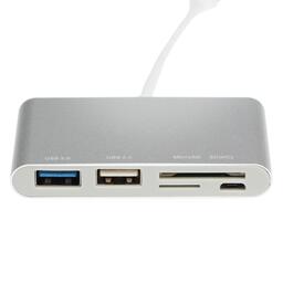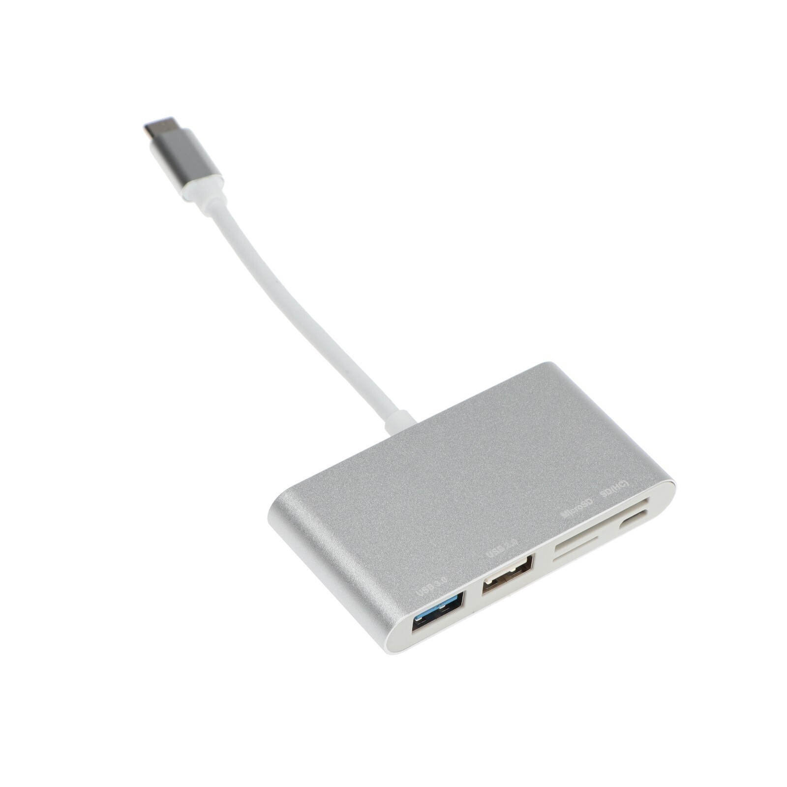 Адаптер Red Line Lite, Type-C - 2 USB/microUSB/microSD/SD, серебристый