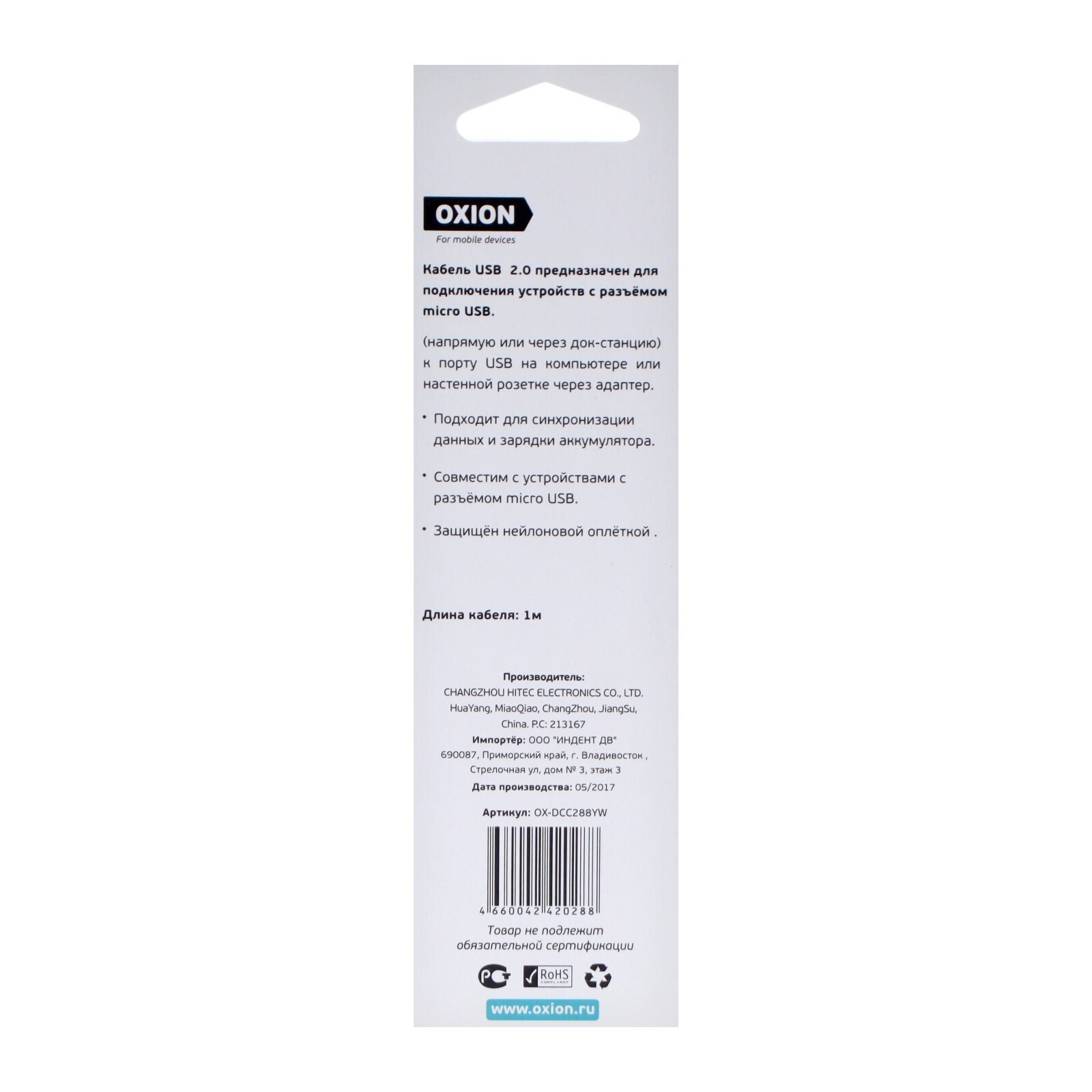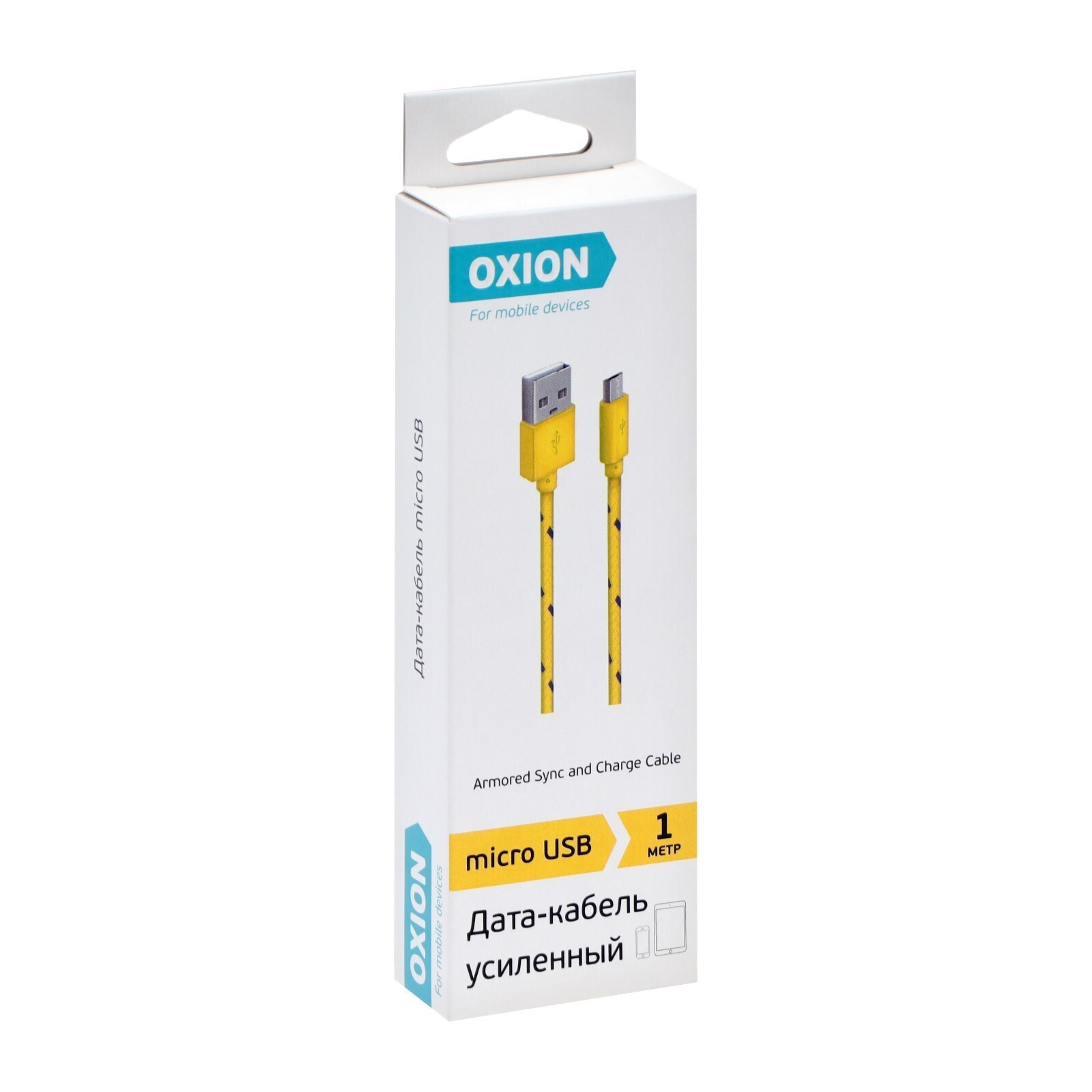 Кабель OXION DCC288, microUSB - USB, зарядка + передача данных, 1 м, оплетка, желтый