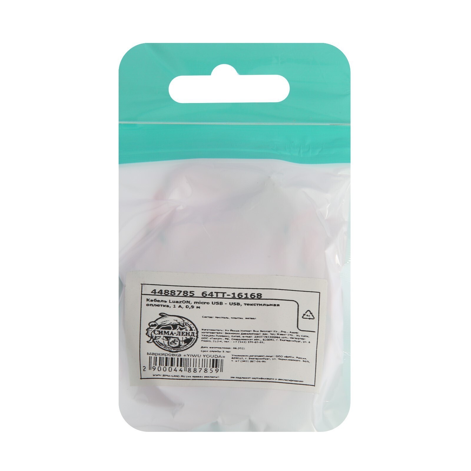 Кабель LuazON, microUSB - USB, 1 А, 0,9 м, оплётка нейлон, розовый