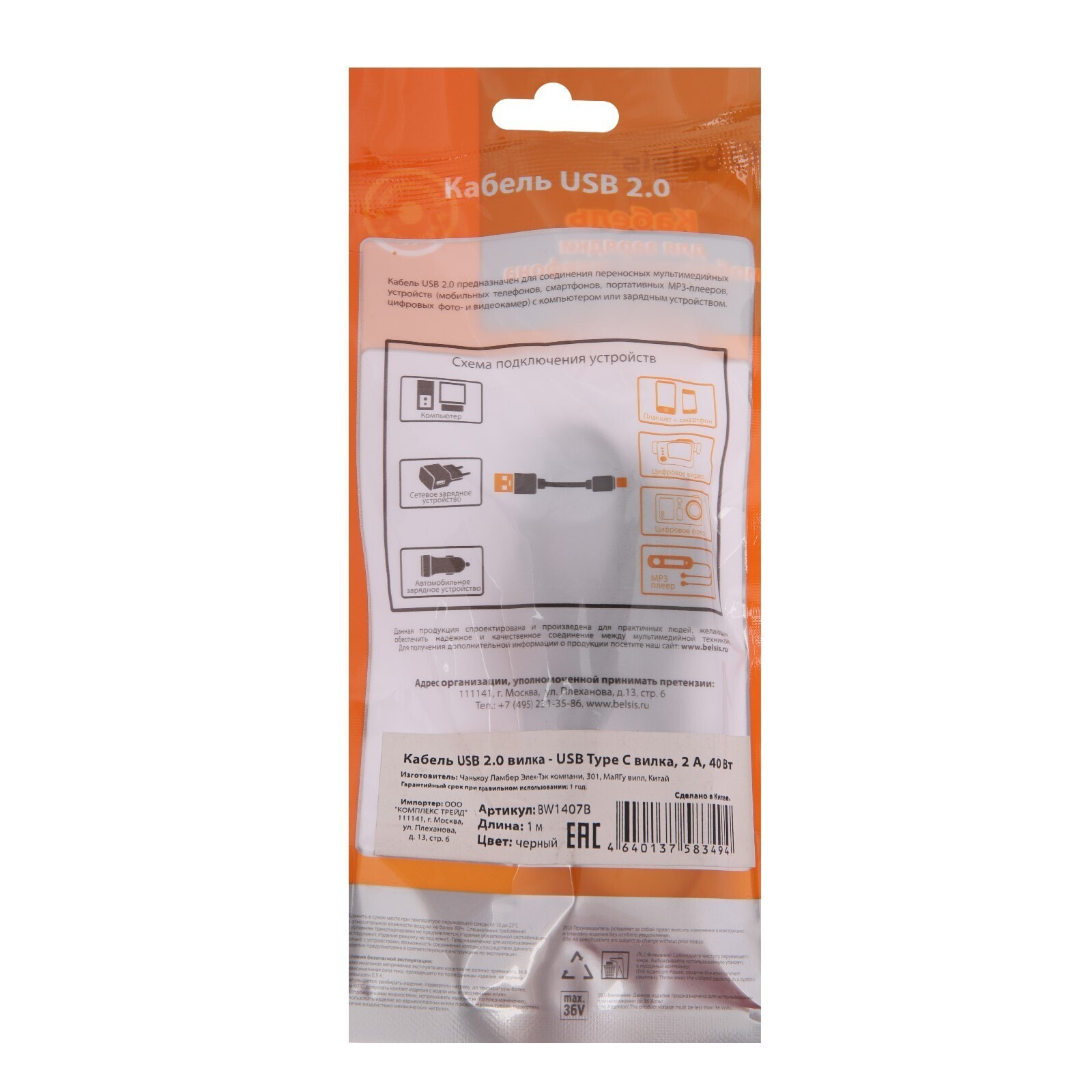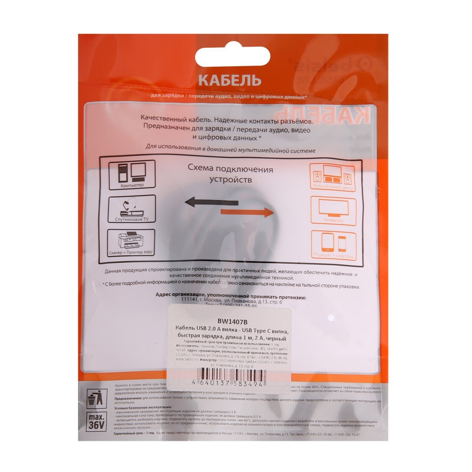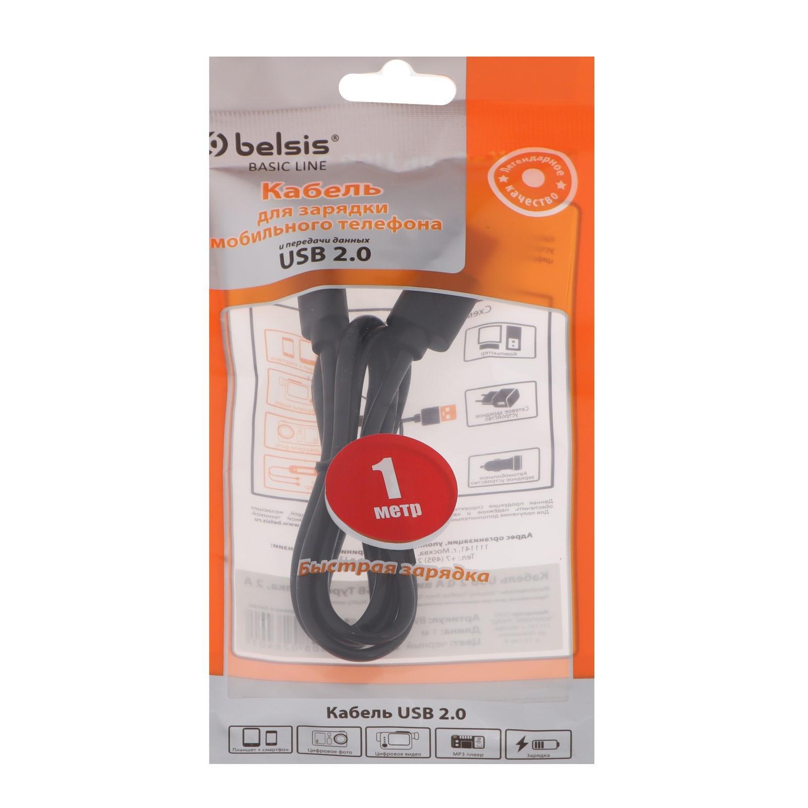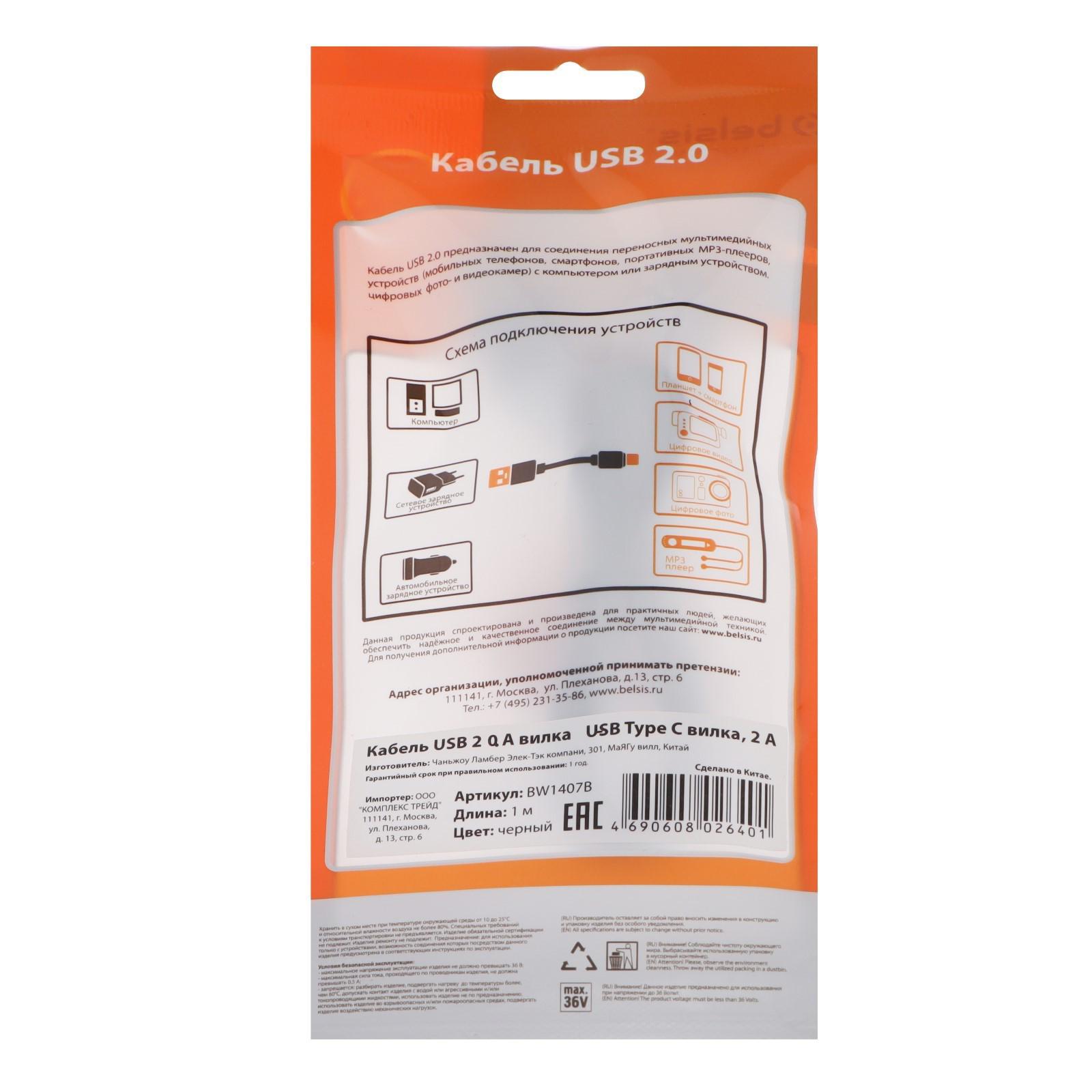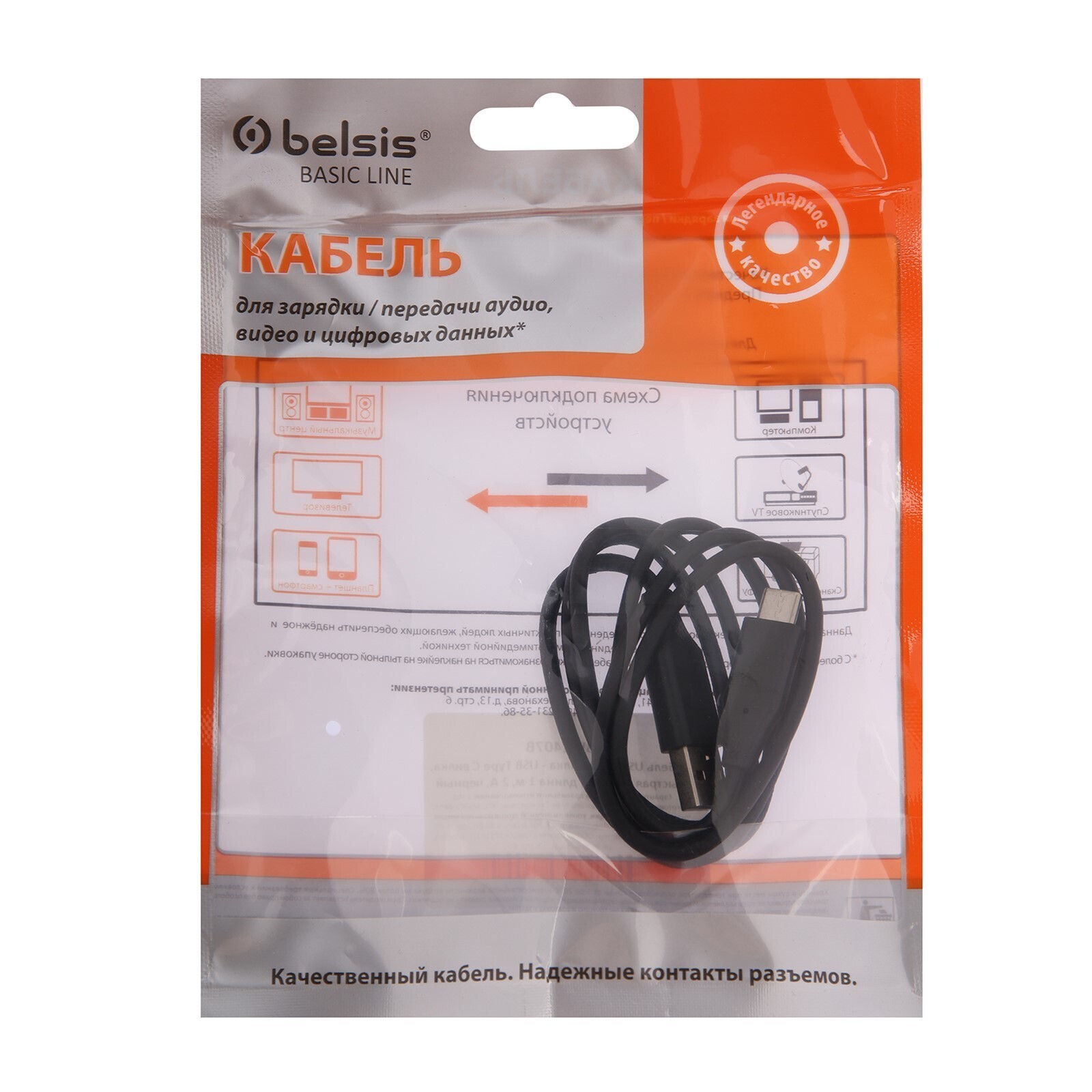 Кабель Belsis BW1407B, Type-C - USB, 2,0 А, 1 м, быстрая зарядка, передача данных, черный