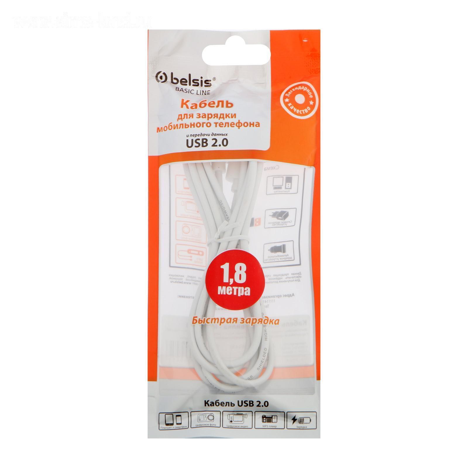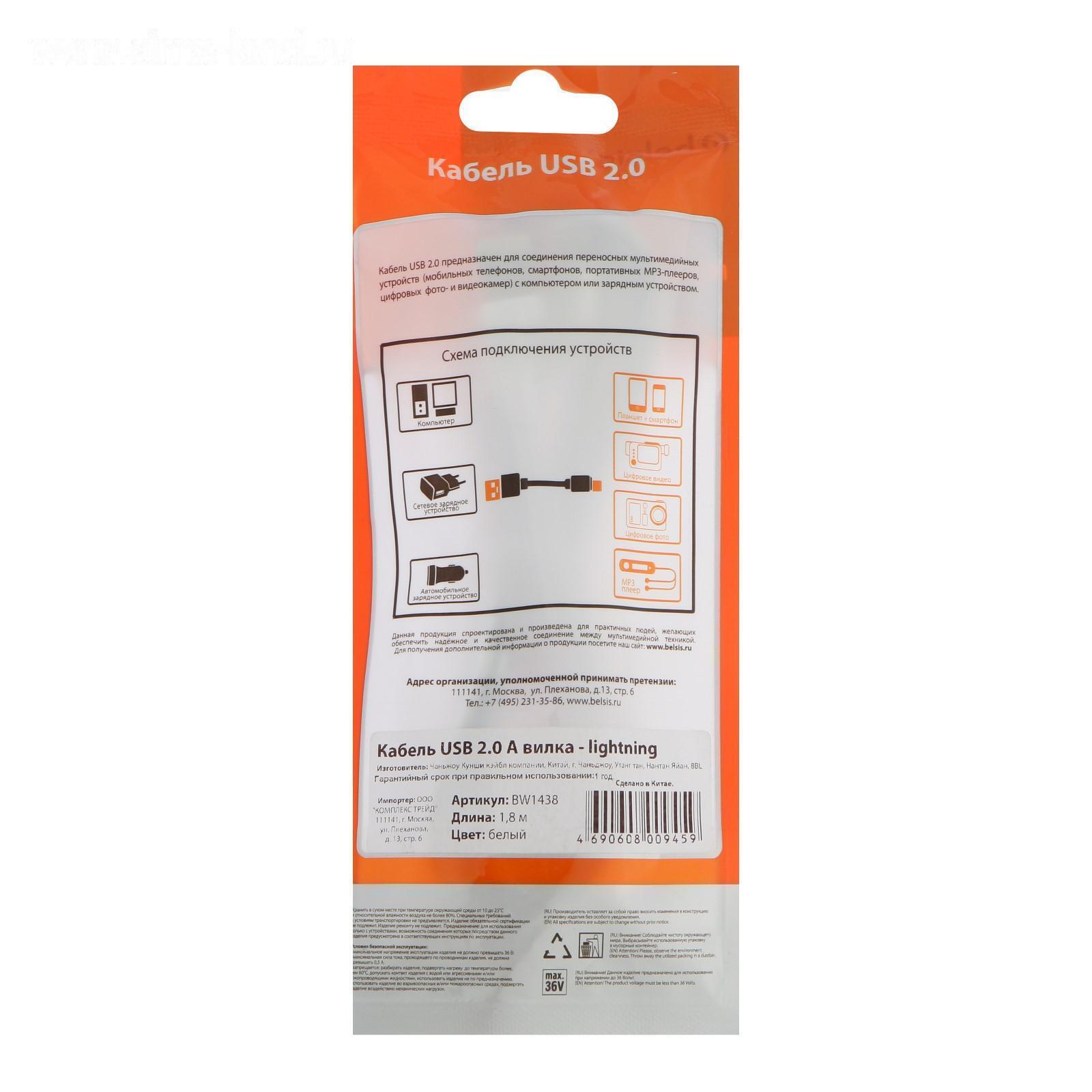 Кабель Belsis BW1438, Lightning - USB, 2 А, 1.8 м, белый