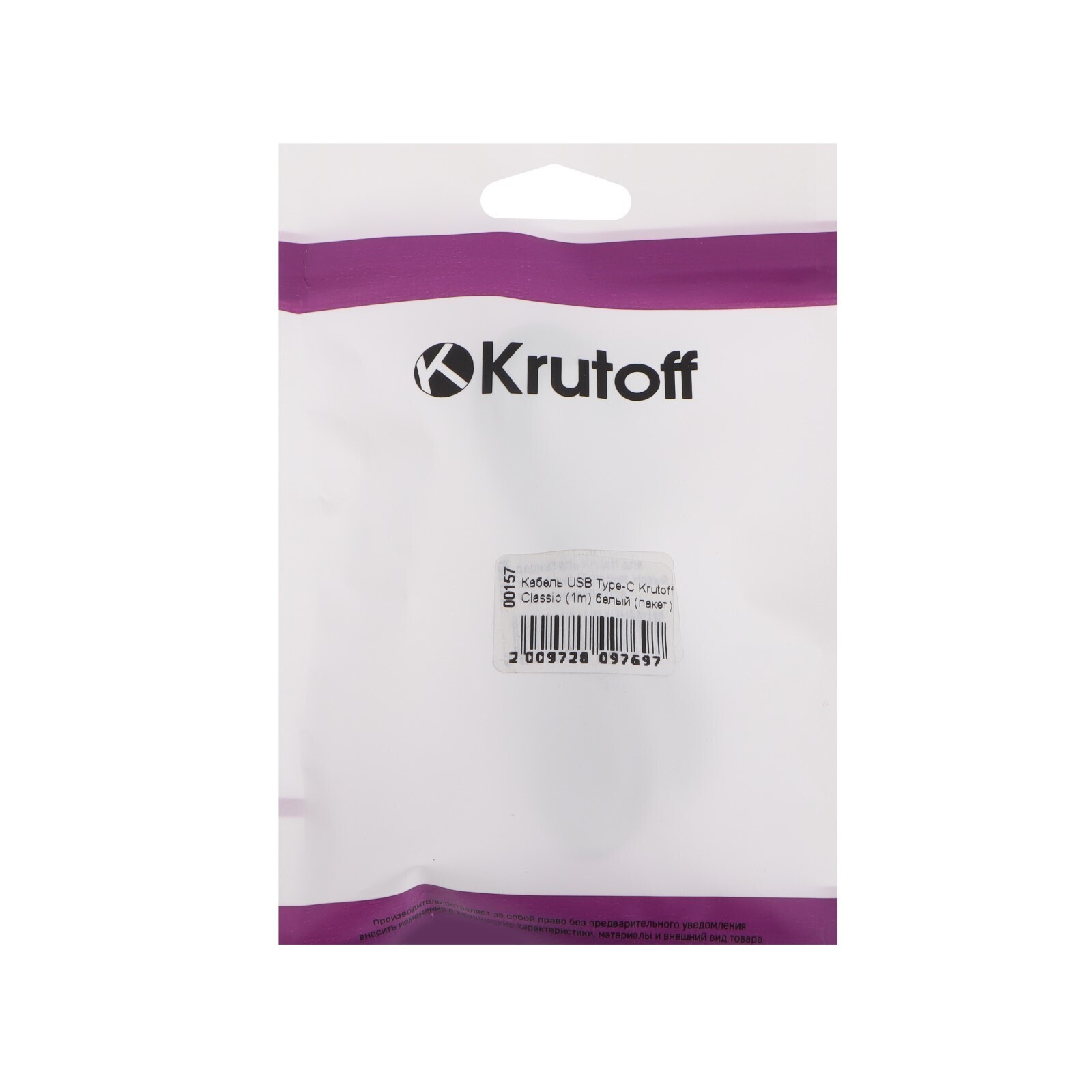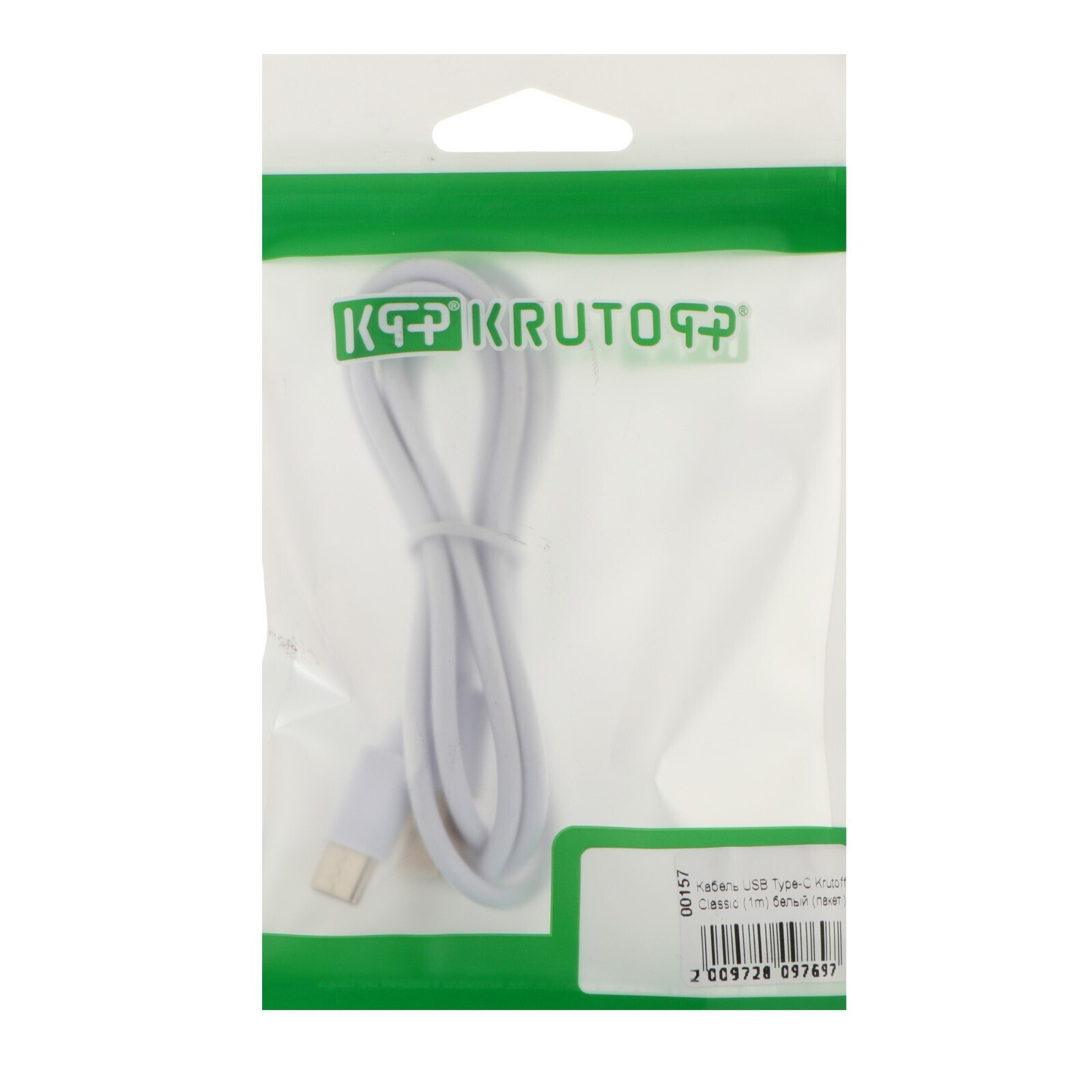 Кабель Krutoff Classic, Type-C - USB, 1.5 А, 1 м, TPE покрытие, белый