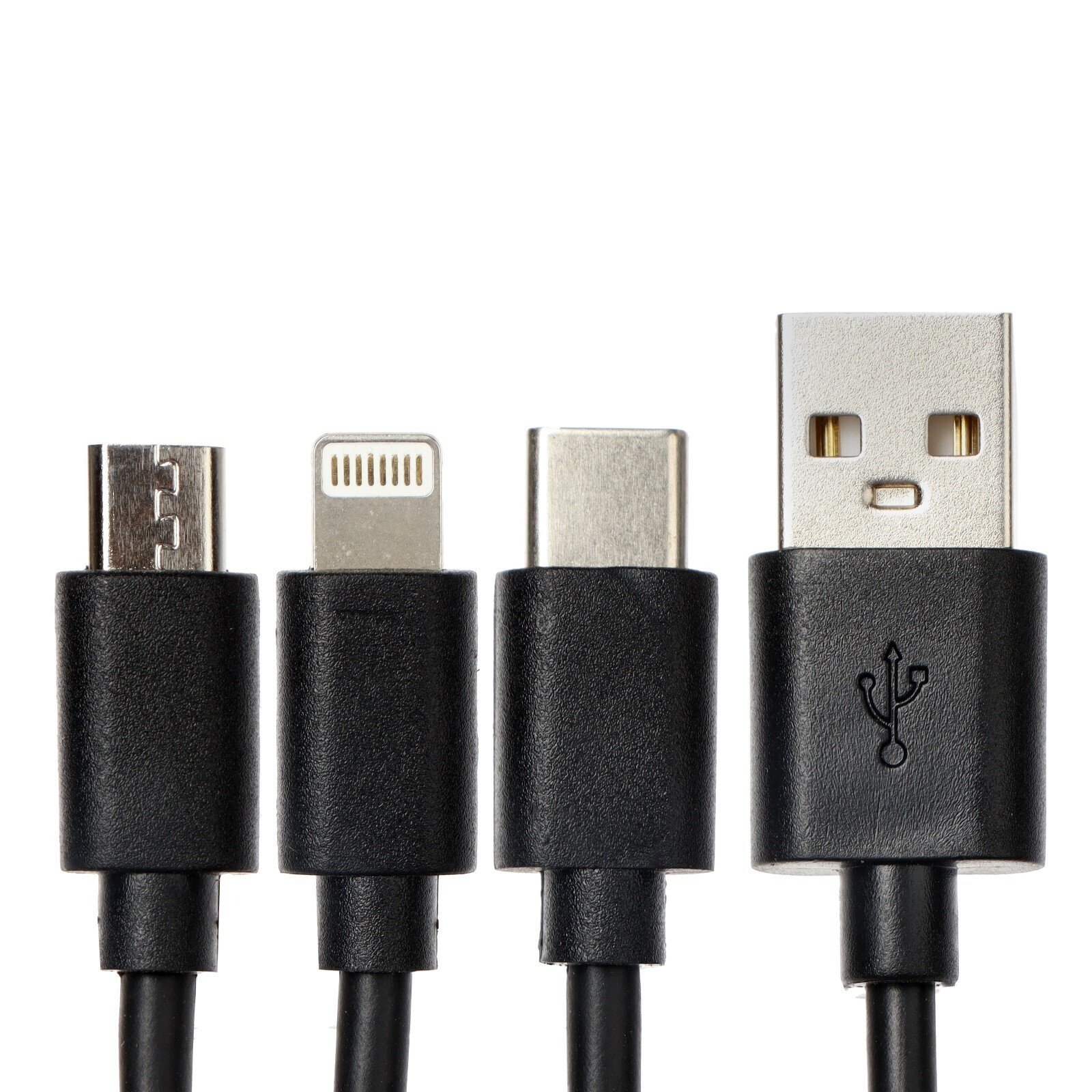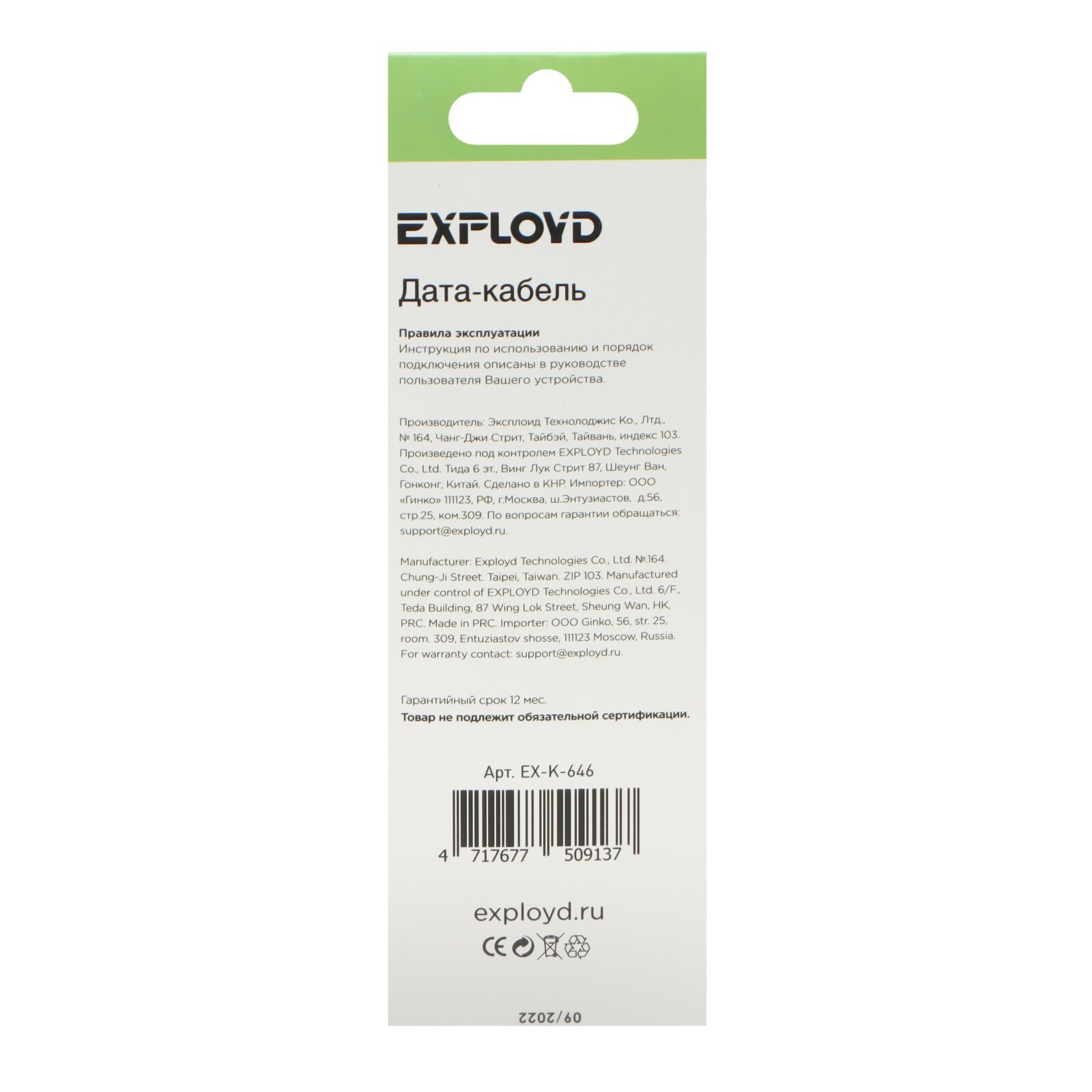Кабель 3 в 1 Exployd EX-K-646, USB - microUSB/Lightning/Type-C, 2.1 А, 1.2м, силикон, черный