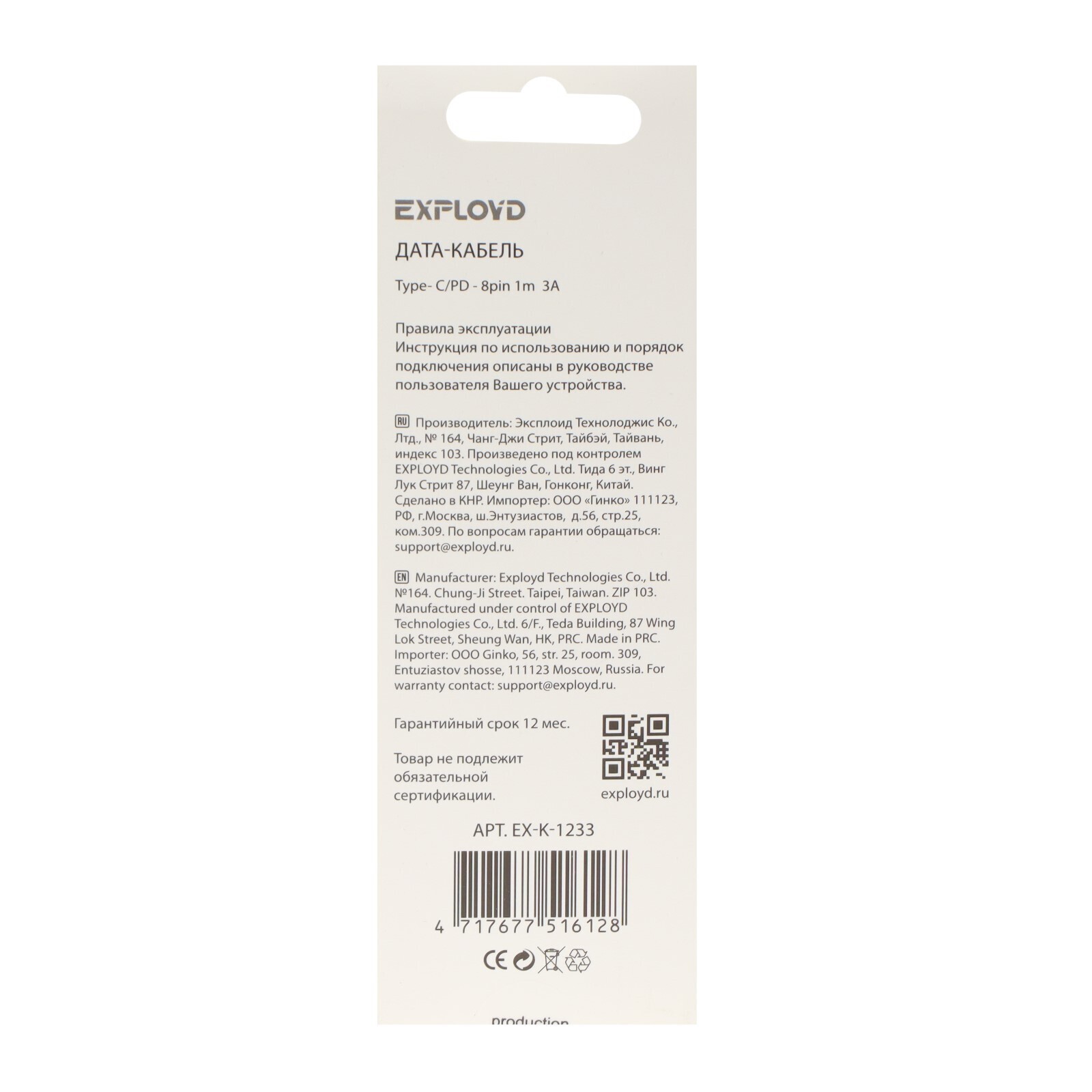 Кабель Exployd EX-K-1232, Type-C - Lightning, 3 А, 1 м, силикон, быстрая зарядка, белый