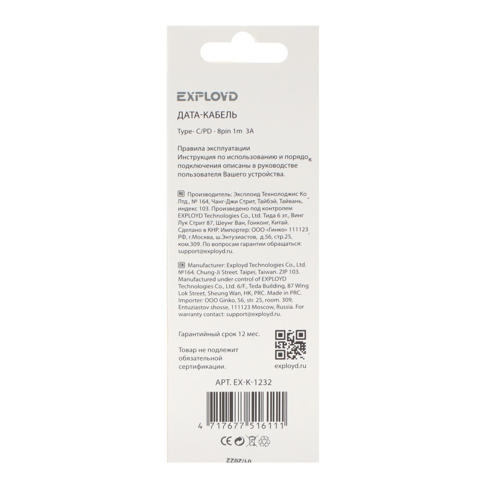 Кабель Exployd EX-K-1232, Type-C - Lightning, 3 А, 1 м, силикон, быстрая зарядка, черный