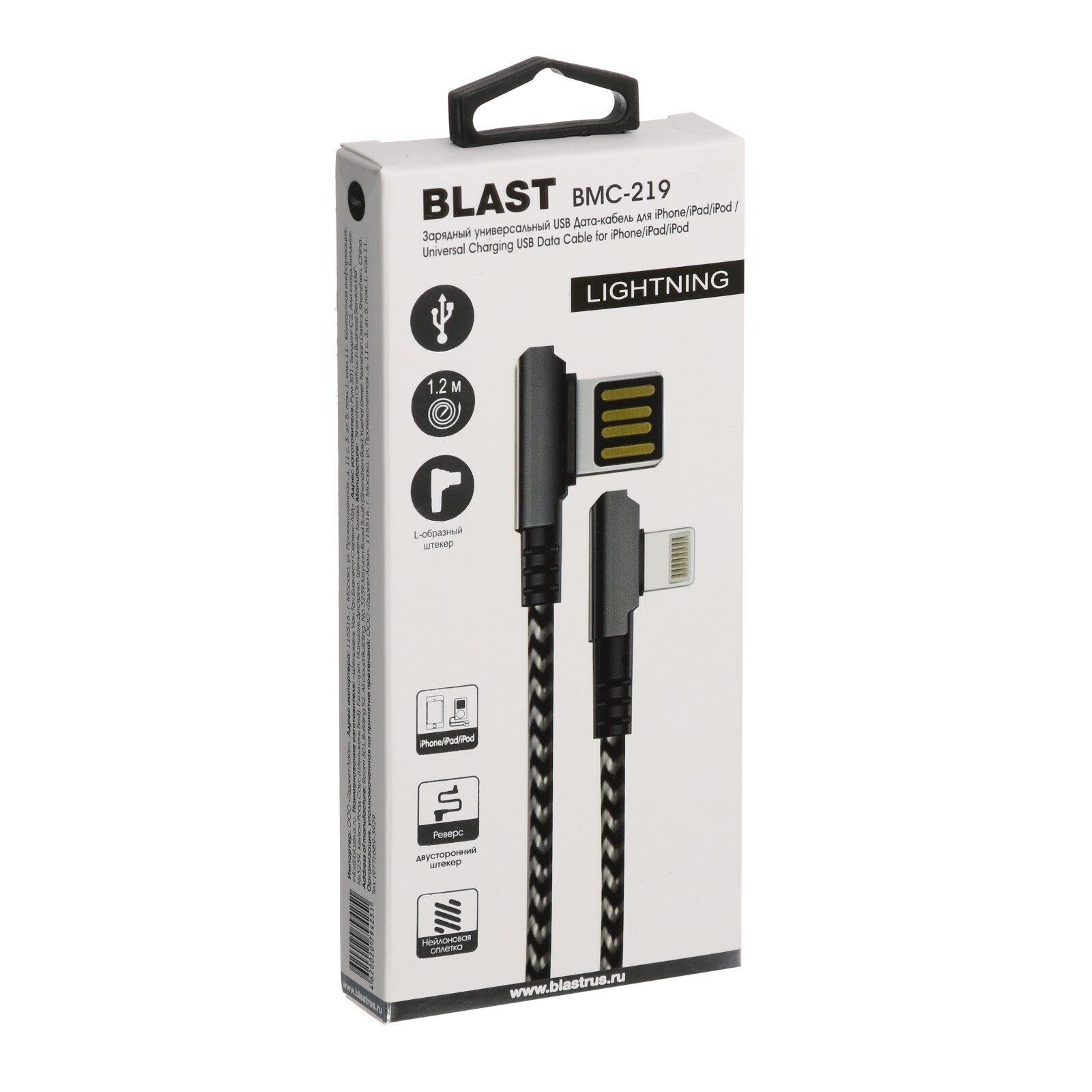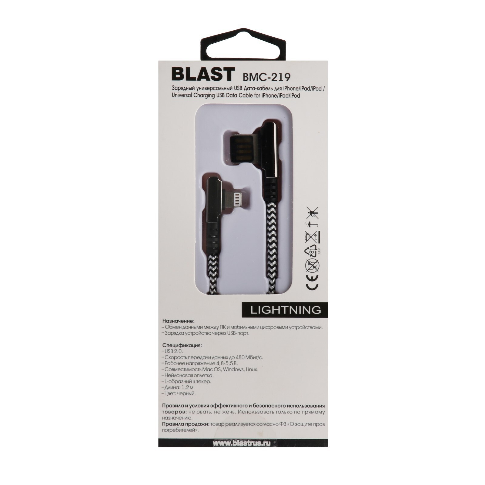 Кабель Blast BMC-219, Lightning - USB, нейлоновая оплетка, L-образный, 1.2 м, черный