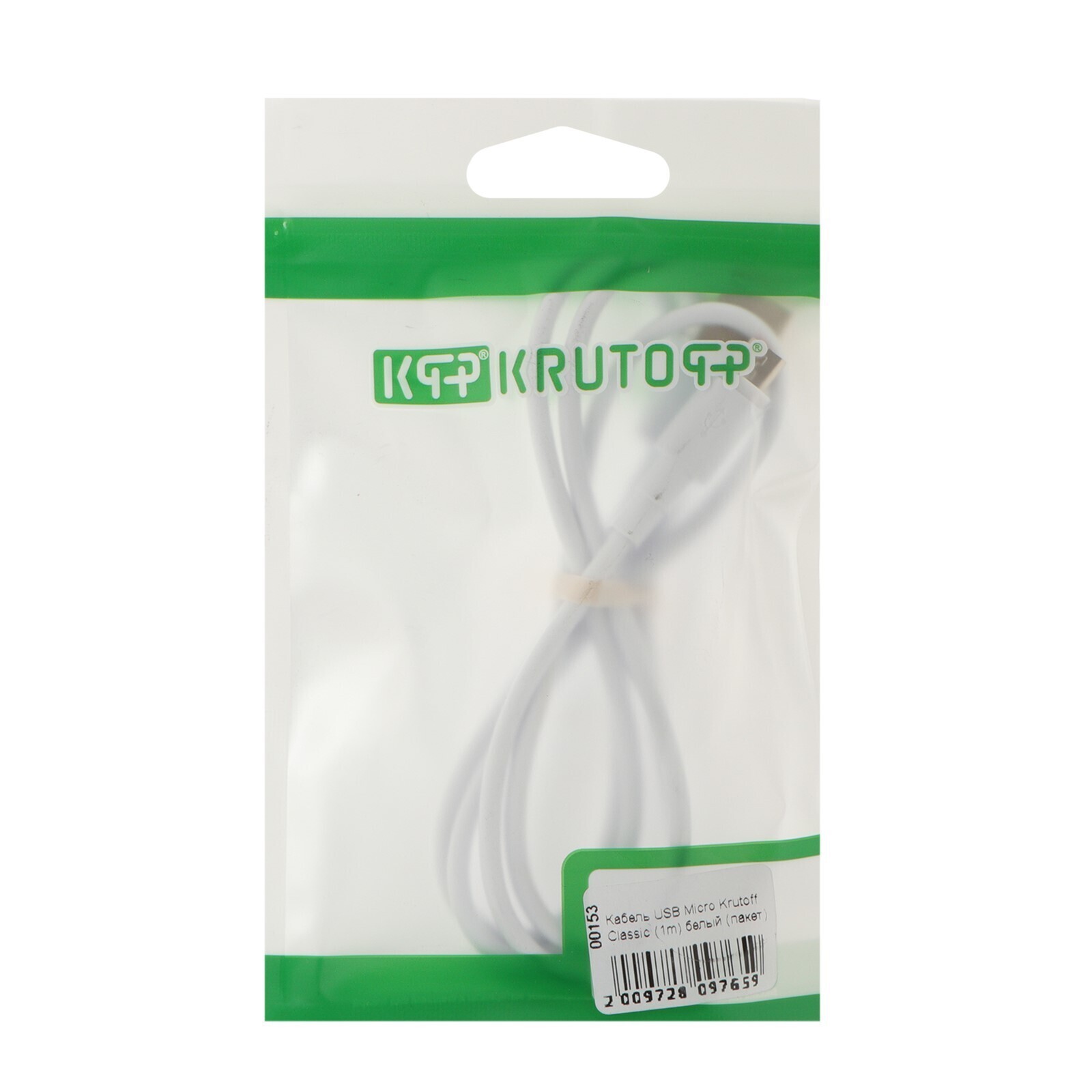 Кабель Krutoff Classic, microUSB - USB, 1.5 А, 1 м, TPE покрытие, белый