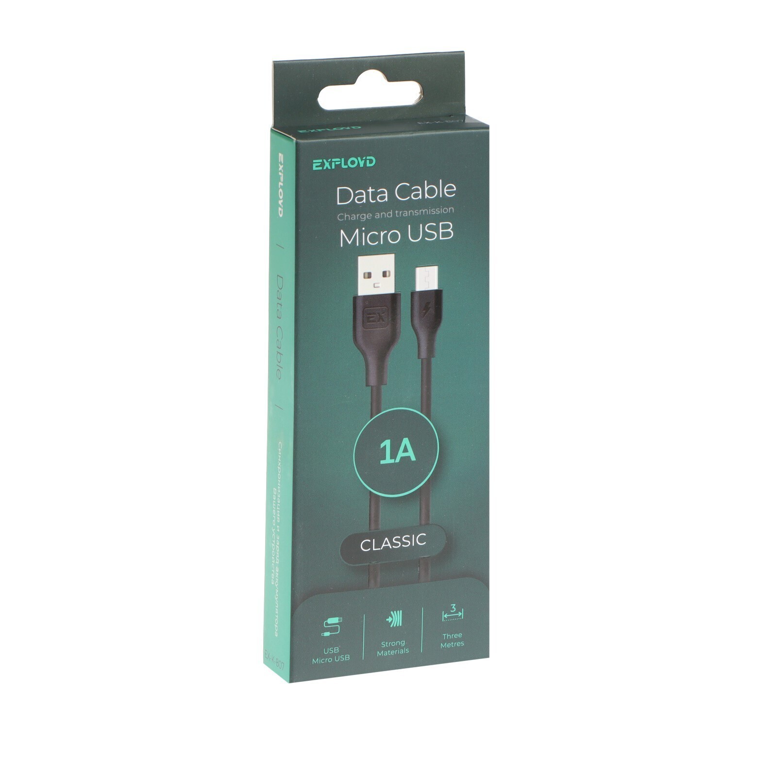 Кабель Exployd EX-K-807, microUSB - USB, 1 А, 3 м, черный