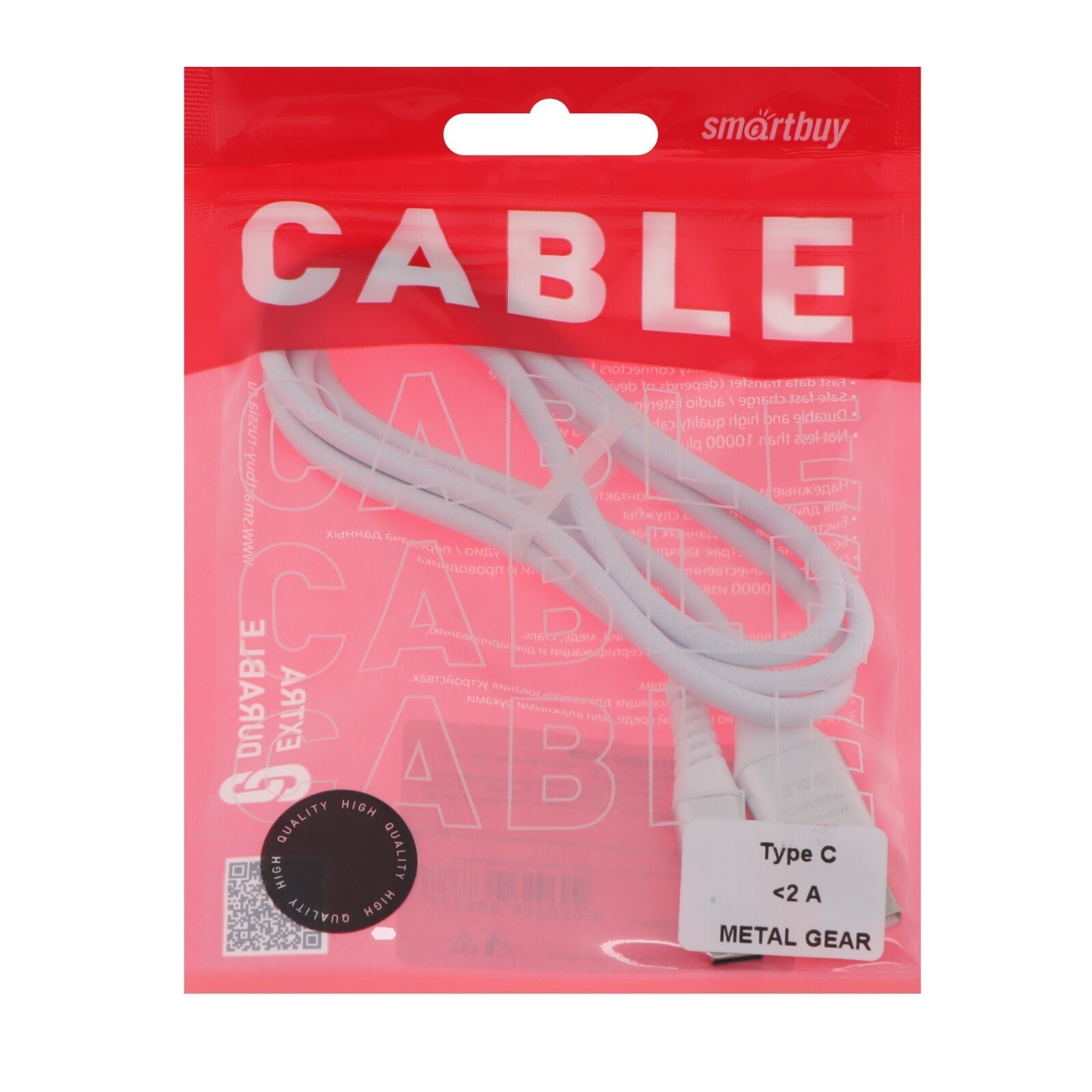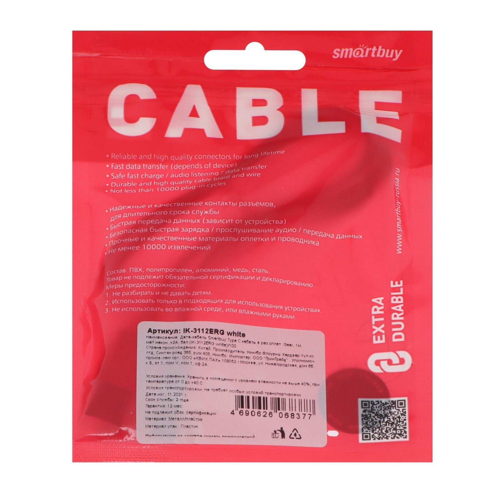 Кабель Smartbuy iK-3112ERG, Type-C - USB, 2 А, 1 м, силикон, передача данных/зарядка, белый