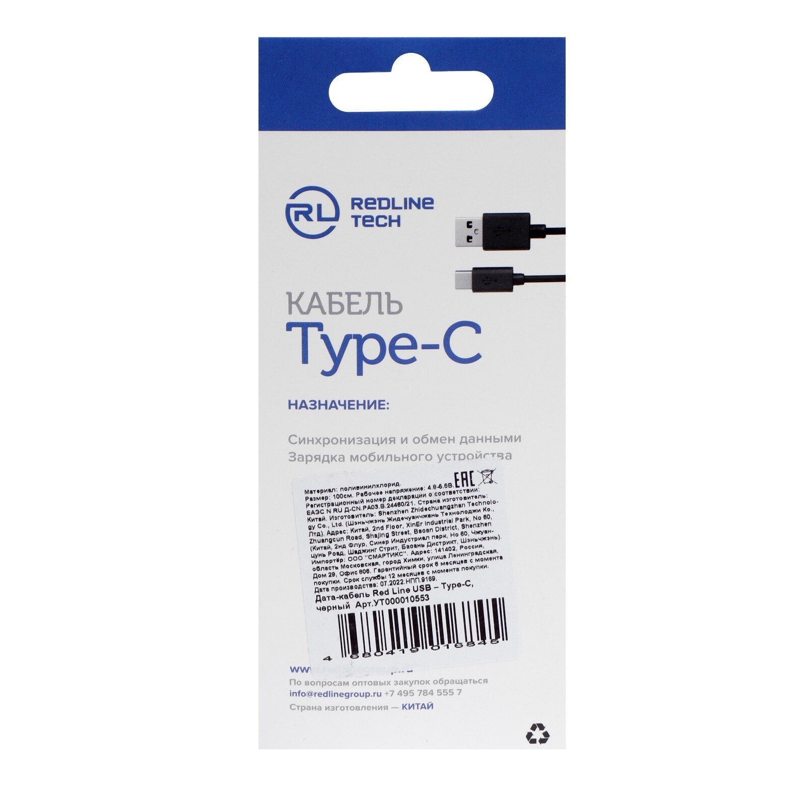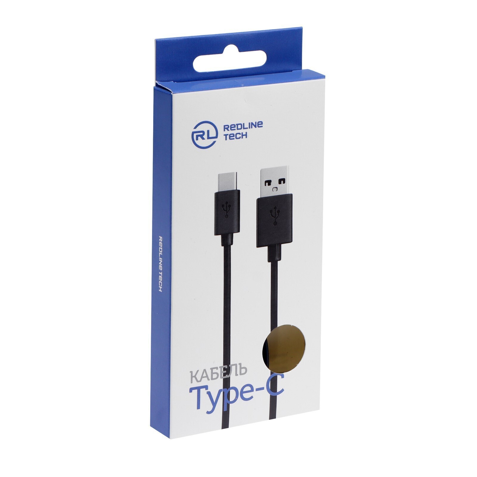 Кабель Red Line (УТ000010553), Type-C - USB, 1 м, зарядка + передача данных, черный