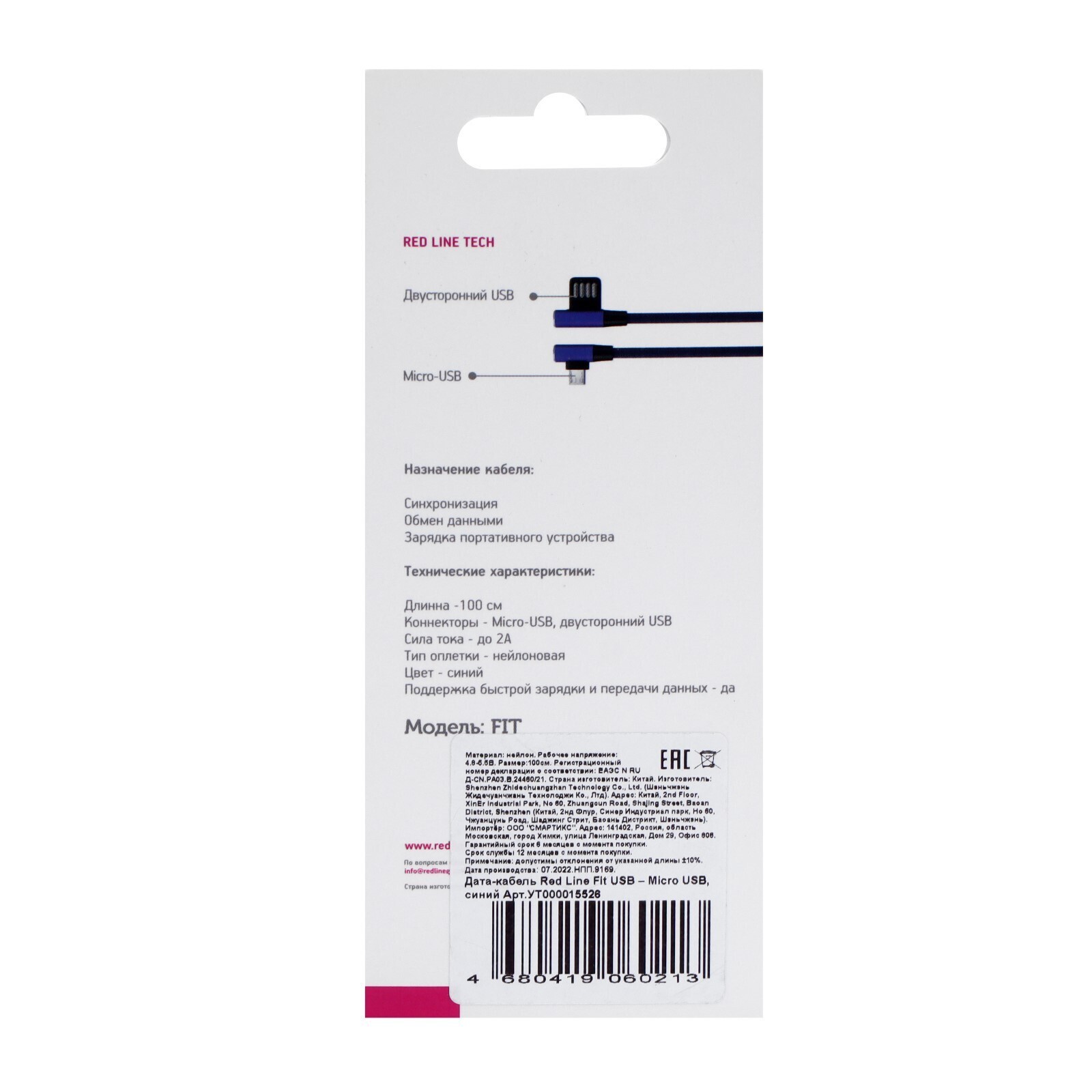 Кабель Red Line (УТ000015526), microUSB - USB, 2А, 1 м, зарядка + передача данных, синий