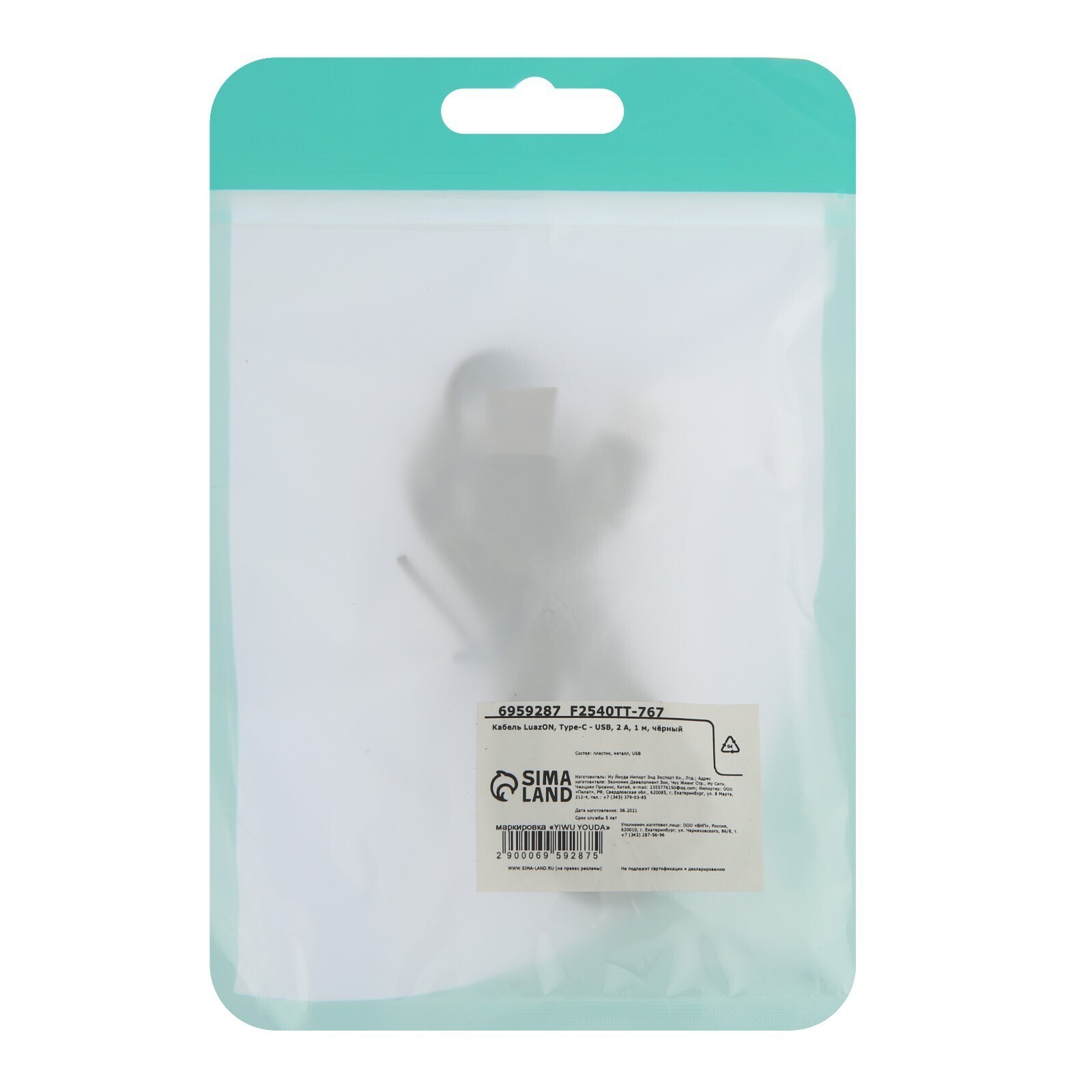 Кабель LuazON, Type-C - USB, 2 А, 1 м, чёрный