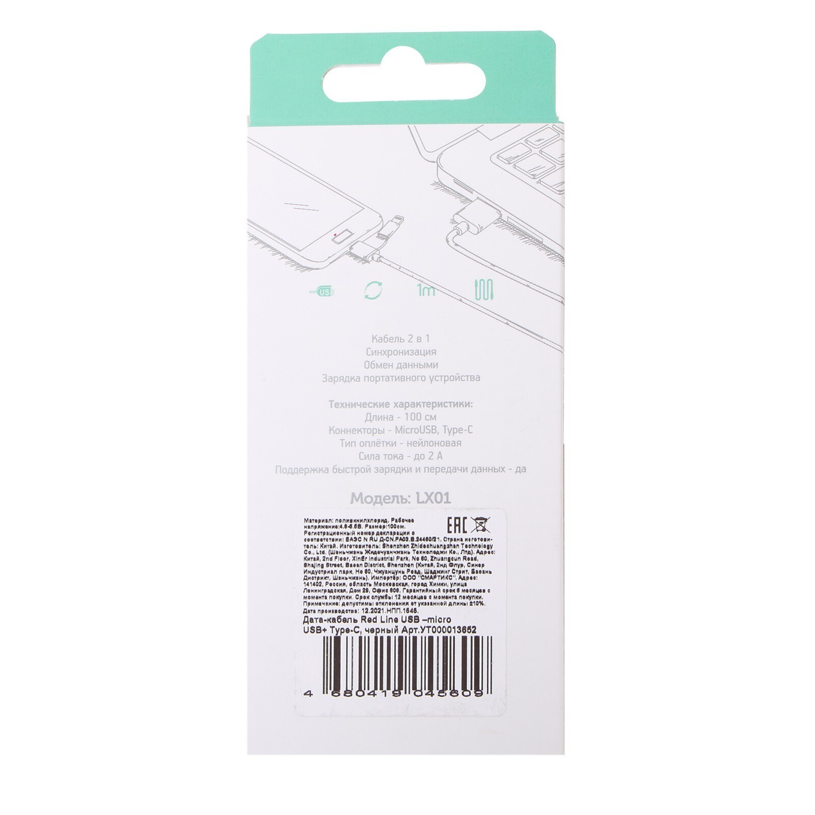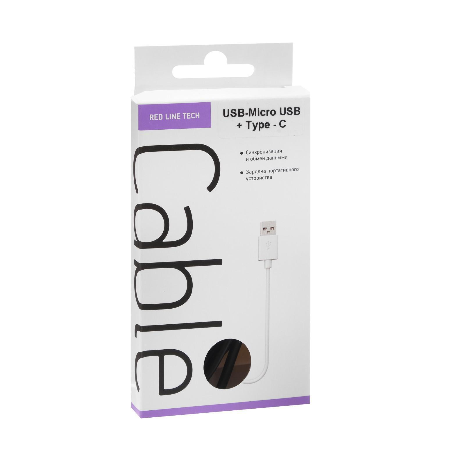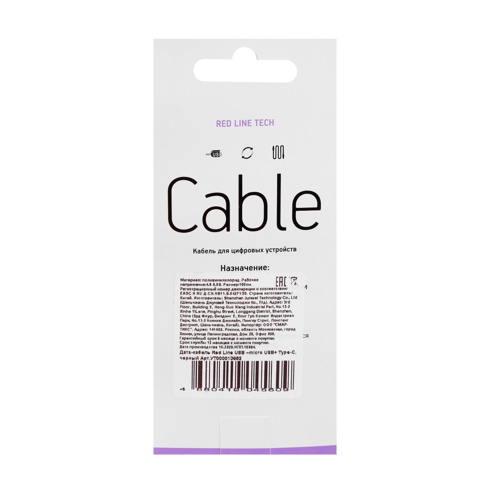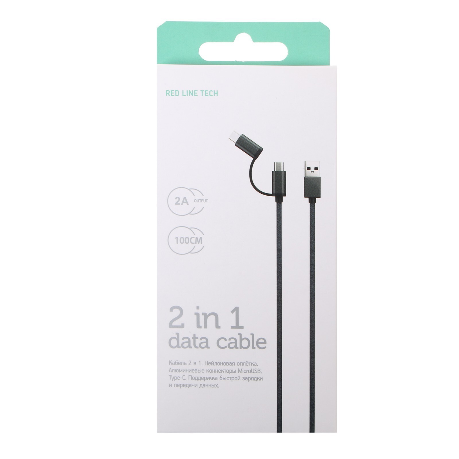 Кабель Red Line, Micro USB+Type-C - USB, 2 А, 1 м, черный