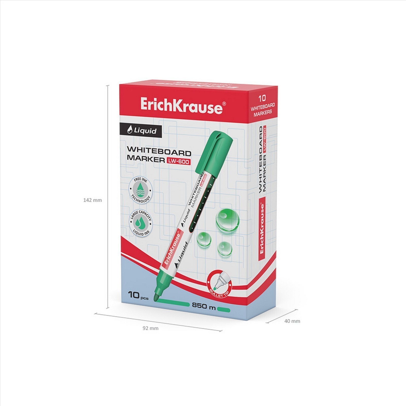 Маркер для досок ErichKrause Liquid LW-600, 2.38 мм, жидкие чернила на спиртовой основе, зелёный