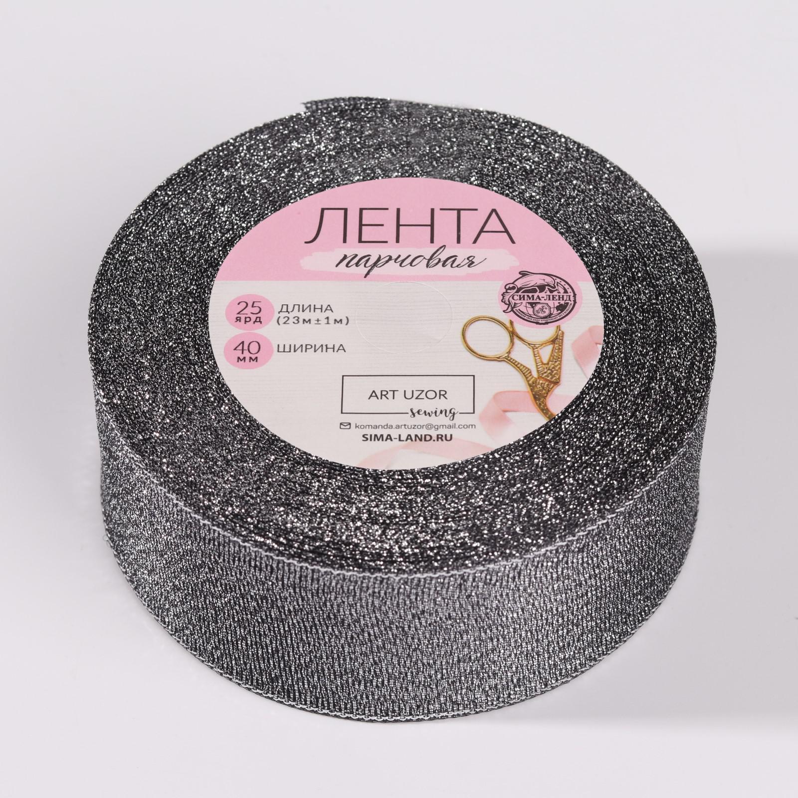 Лента парчовая, 40 мм, 23 ± 1 м, цвет чёрный №029