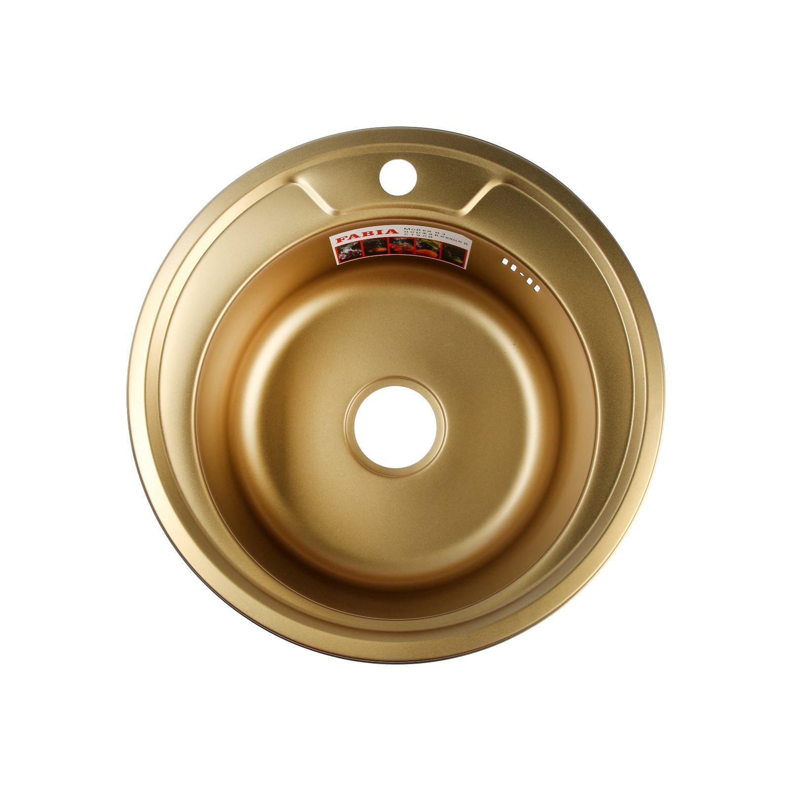 Мойка кухонная FABIA 9561, врезная, d=490мм, 180мм, толщина 0,8мм, сифон с переливом, золото