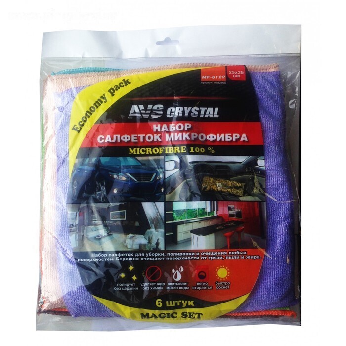 Набор салфеток экономичный для полировки и очистки AVS MF-6122, 25 х 25 см, набор 6 шт