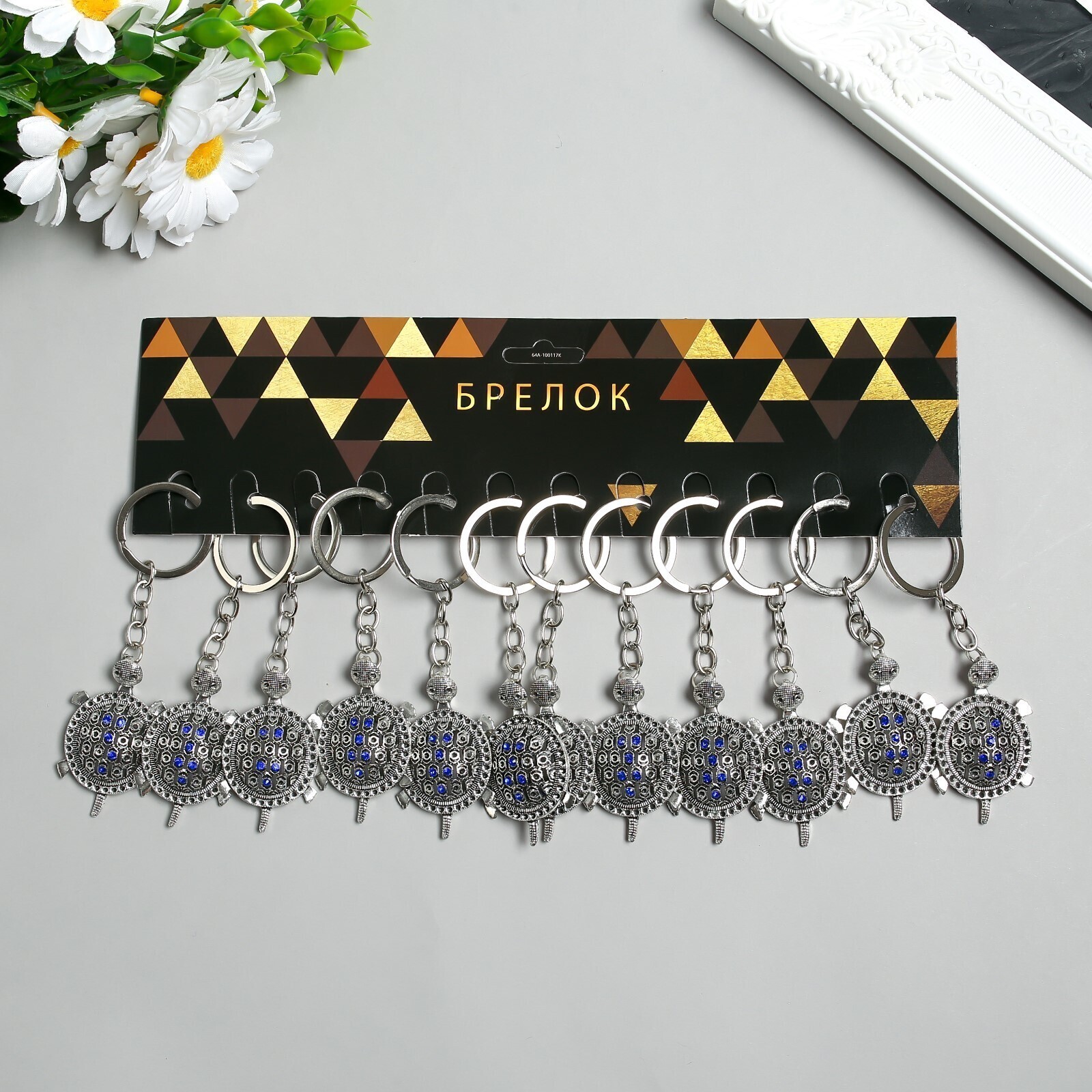 Брелок металл "Черепашка" стразы 4,3х2,8 см