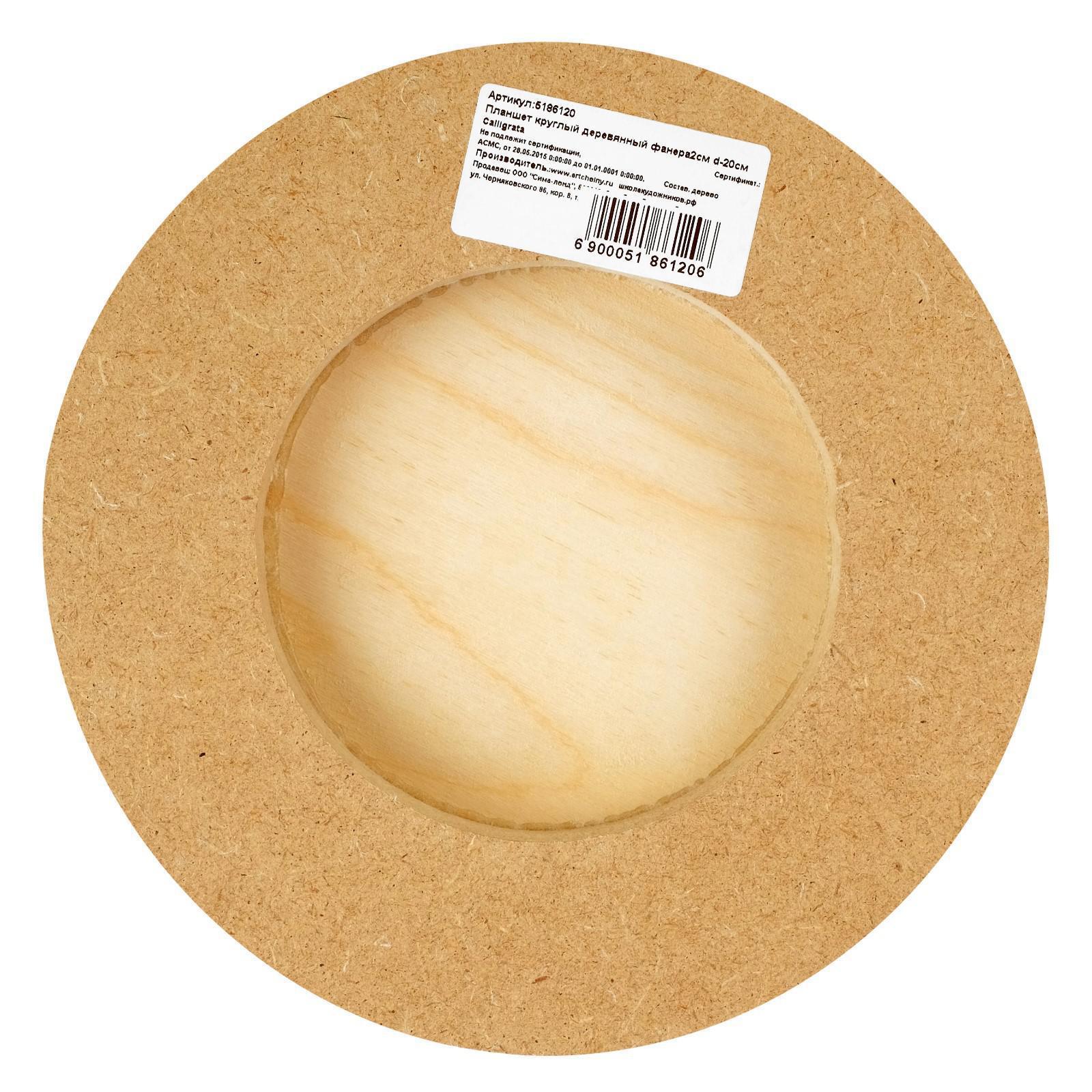 Планшет круглый деревянный фанера d-20 х 2 см, сосна, Calligrata