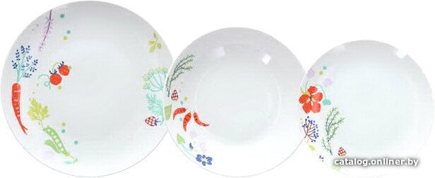 - Состав набора тарелка закусочная (десертная) (6 шт.), тарелка столовая глубокая (6 шт.), тарелка столовая обеденная (6 шт.)