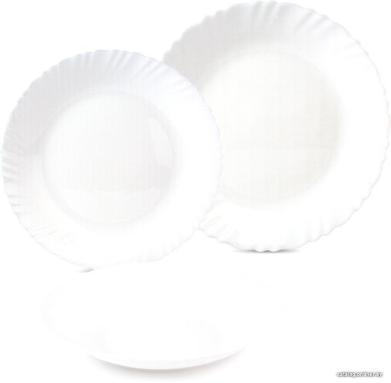 • Состав набора тарелка закусочная (десертная) (6 шт.), тарелка столовая глубокая (6 шт.), тарелка столовая обеденная (6 шт.)