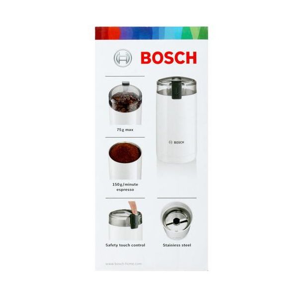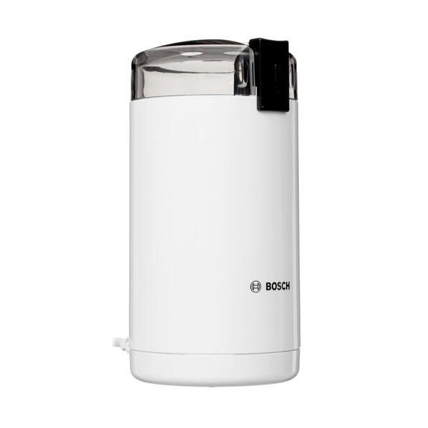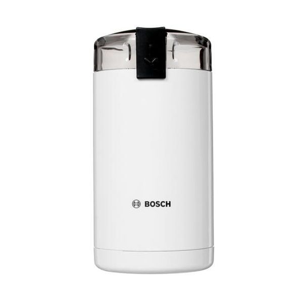 Кофемолка электрическая Bosch TSM6A011W - кухонный прибор, который потребуется каждому любителю натурального кофе. С его помощью вы сможете самостоятельно перемолоть кофейные зерна, необходимые в дальнейшем для приготовления ароматного горячего напитка. Имеющий цилиндрическую форму прибор стал обладателем классической белой расцветки корпуса, поэтому он не будет вычурно смотреться на вашей кухне. Серые вставки удачно дополняют дизайн кофемолки. Модель относится к электрическому типу, благодаря чему вам не придется вручную перемалывать кофейные зерна. Кофемолка электрическая Bosch TSM6A011W для помола использует ротационный нож. Во время работы устройства он вращается на большой скорости, тем самым обеспечивая быстрое измельчение кофейных зерен. Быстрому помолу также способствует мощность 180 Вт. Максимальная доза для помола достигает 75 г: такого количества кофе вполне достаточно для приготовления нескольких чашек двойного эспрессо. Модель будет радовать вас своей безупречной службой достаточно длительный срок благодаря использованию в качестве материала изготовления ножей нержавеющей стали.