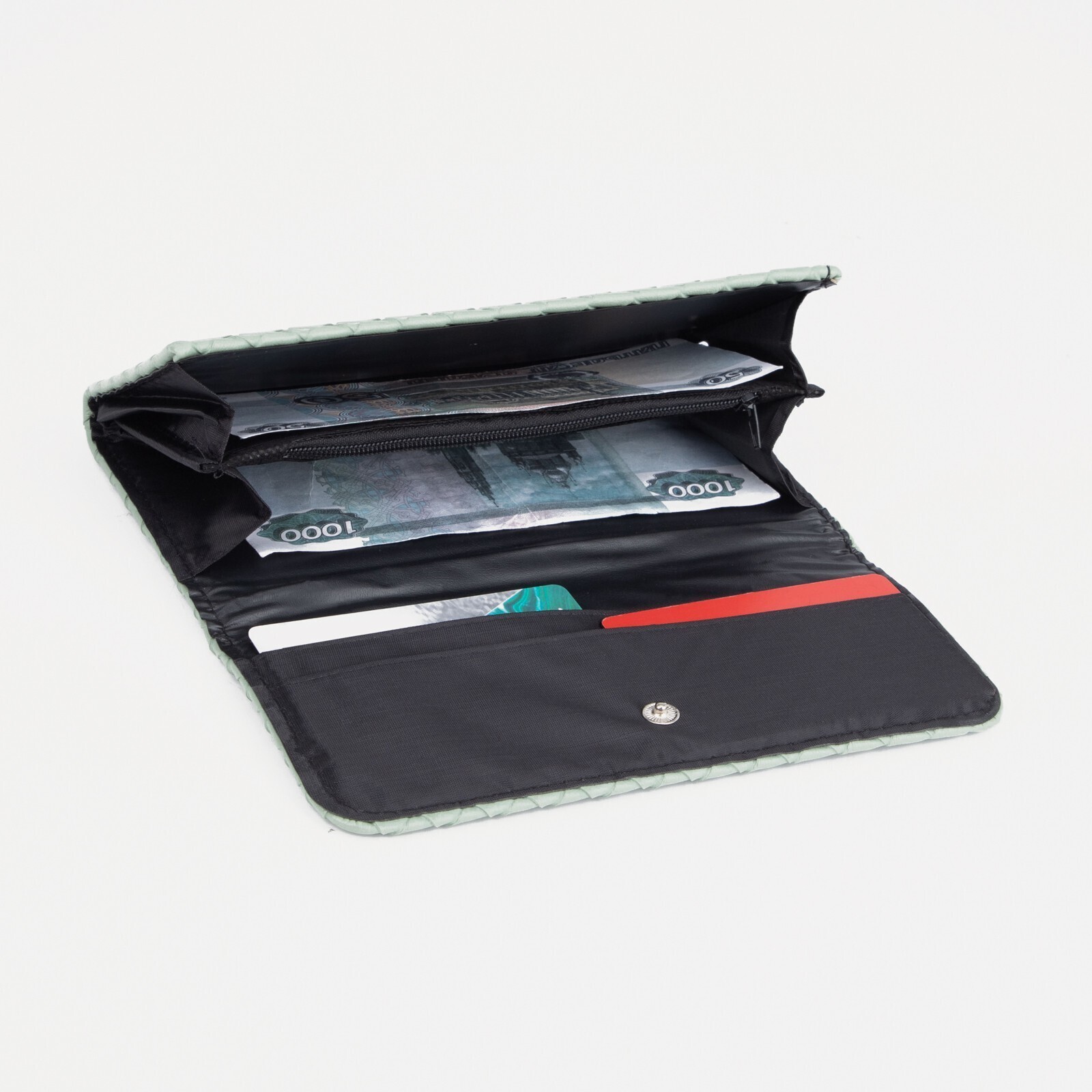 Кошелек жен 06-01-01 Вера, 19*2*9 см, 3 отд, д/карт, д/монет, на кнопке, мятный