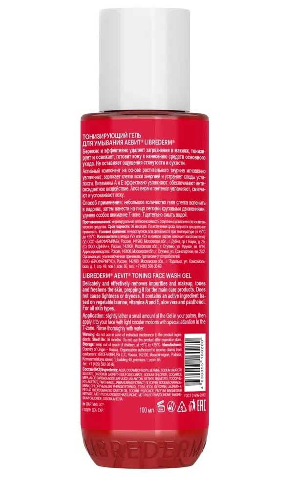В наличии 237 Р247 РГель Aevit by Librederm тонизирующий для умывания 100 мл