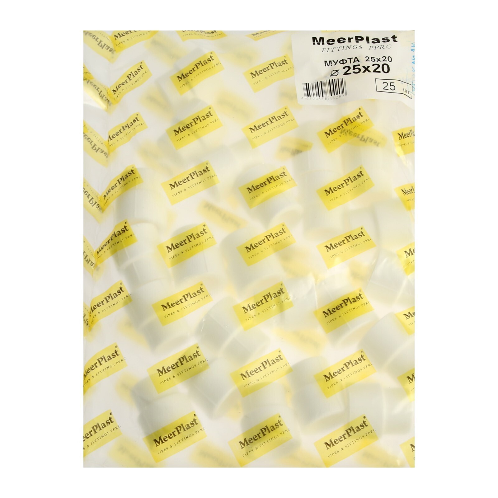 Муфта MeerPlast, полипропиленовая, d=25 мм х 20 мм, белая