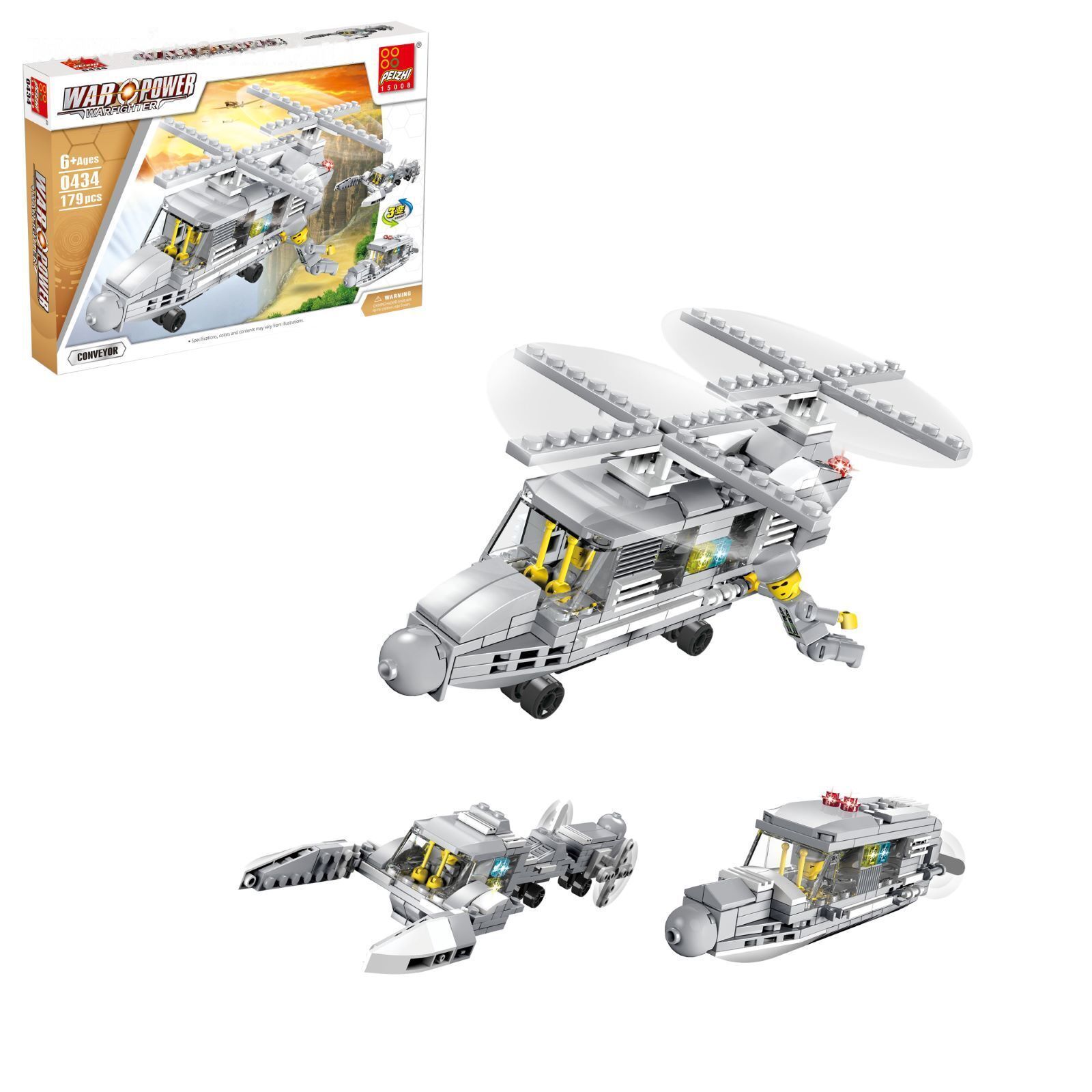 Конструктор «Вертолёт», 179 деталей, 3 варианта сборки