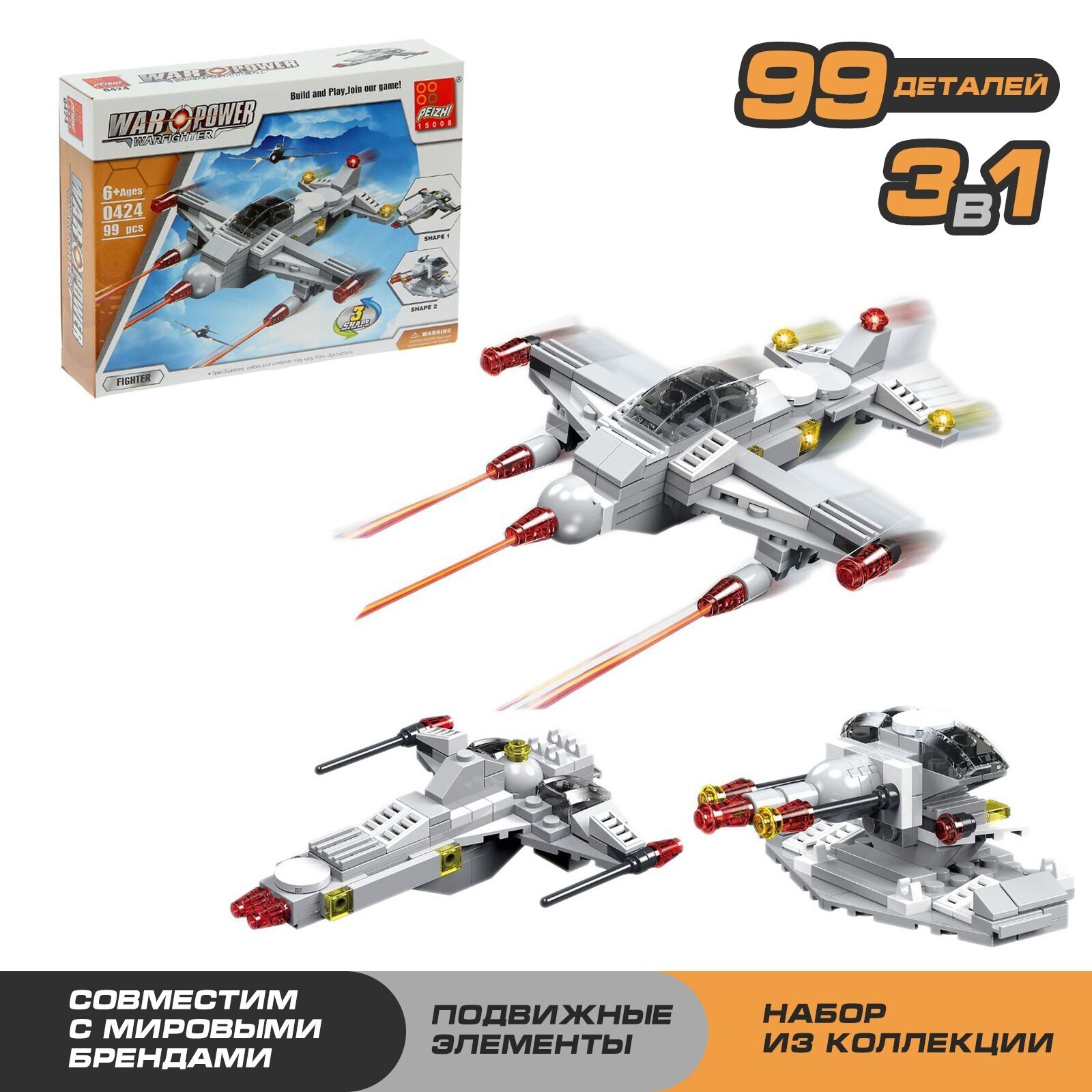 Конструктор «Истребитель», 99 деталей, 3 варианта сборки