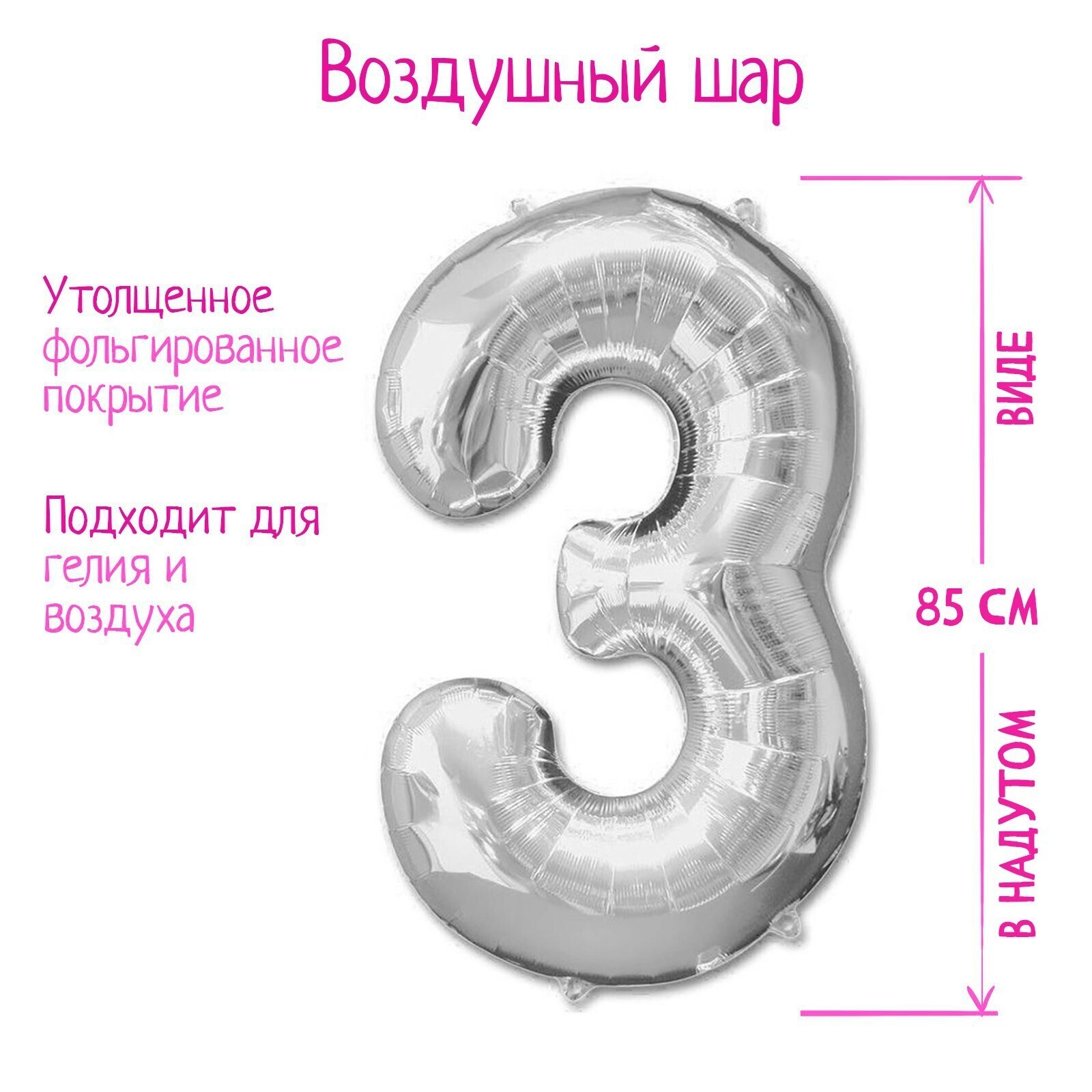 Если шар, то обязательно круглый? Вовсе нет! Яркий и лёгкий шар фольгированный 40" Цифра 3, цвет серебряный создаст атмосферу праздника и станет выразительным дополнением к подарку. Огромная цифра поразит своими размерами, особенно маленьких детишек. Великолепный серебристый цвет придаст сказочный вид любому событию.