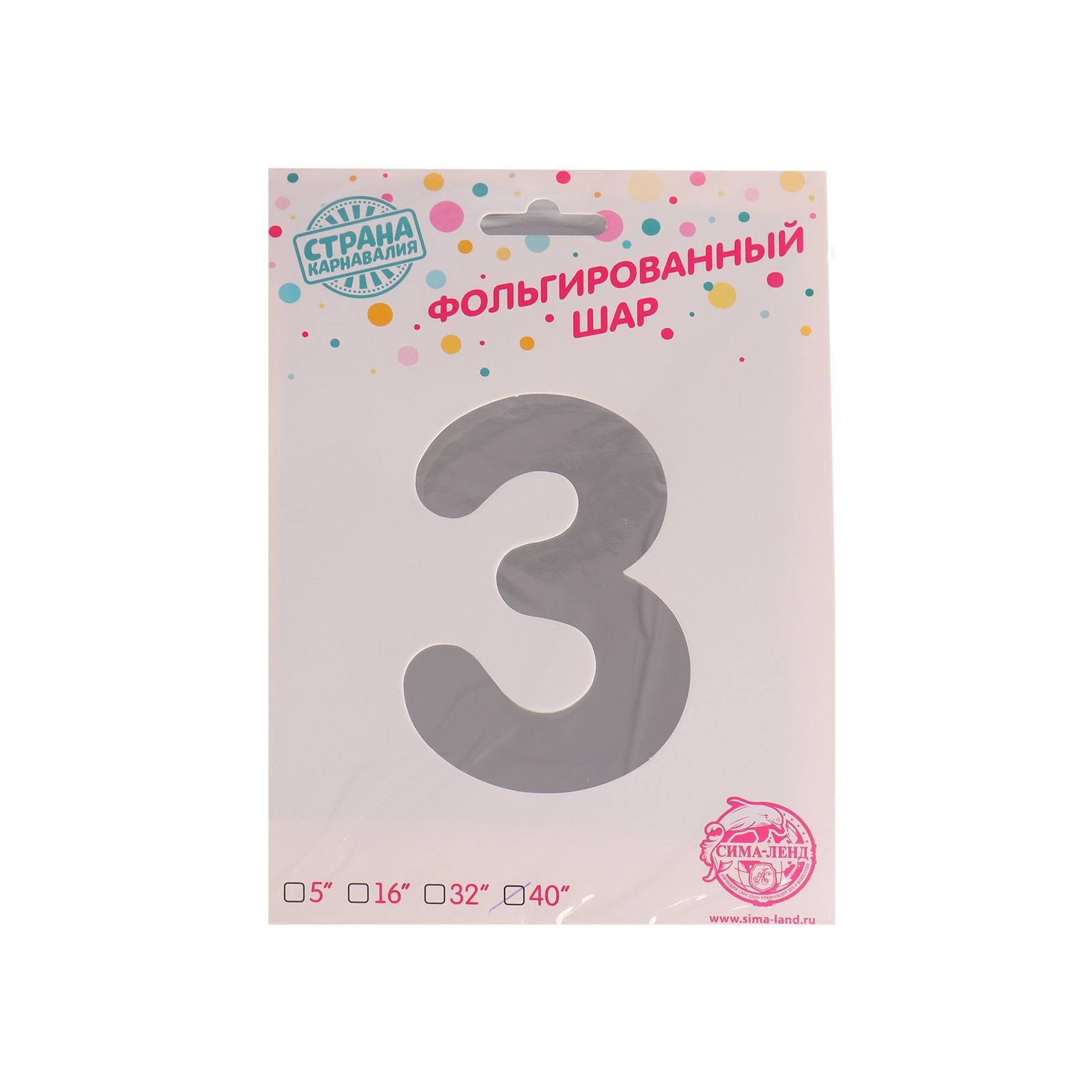 Шар фольгированный 40" Цифра 3, цвет серебряный