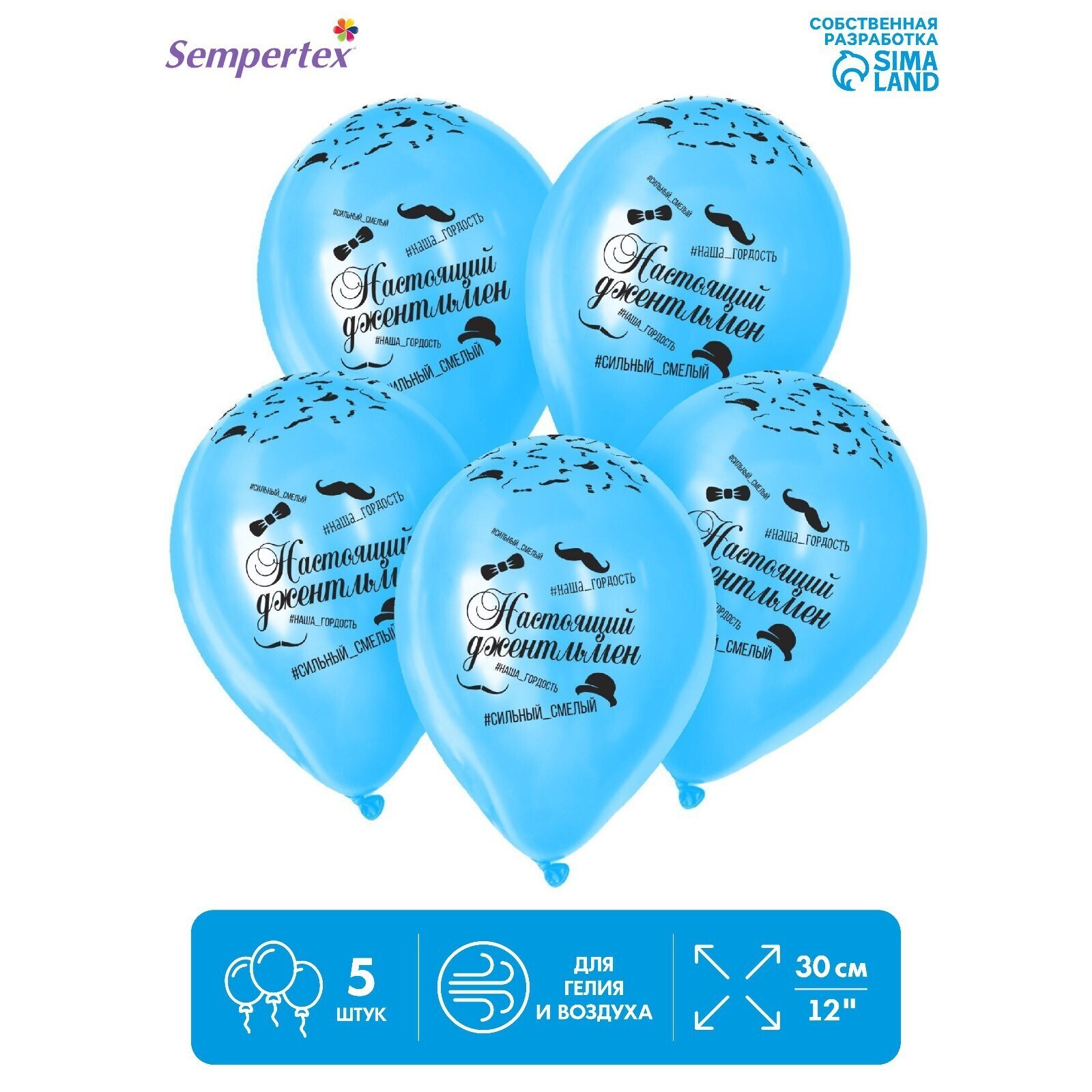 Шар латексный 12" «Настоящий джентльмен», пастель, набор 5 шт., цвет синий