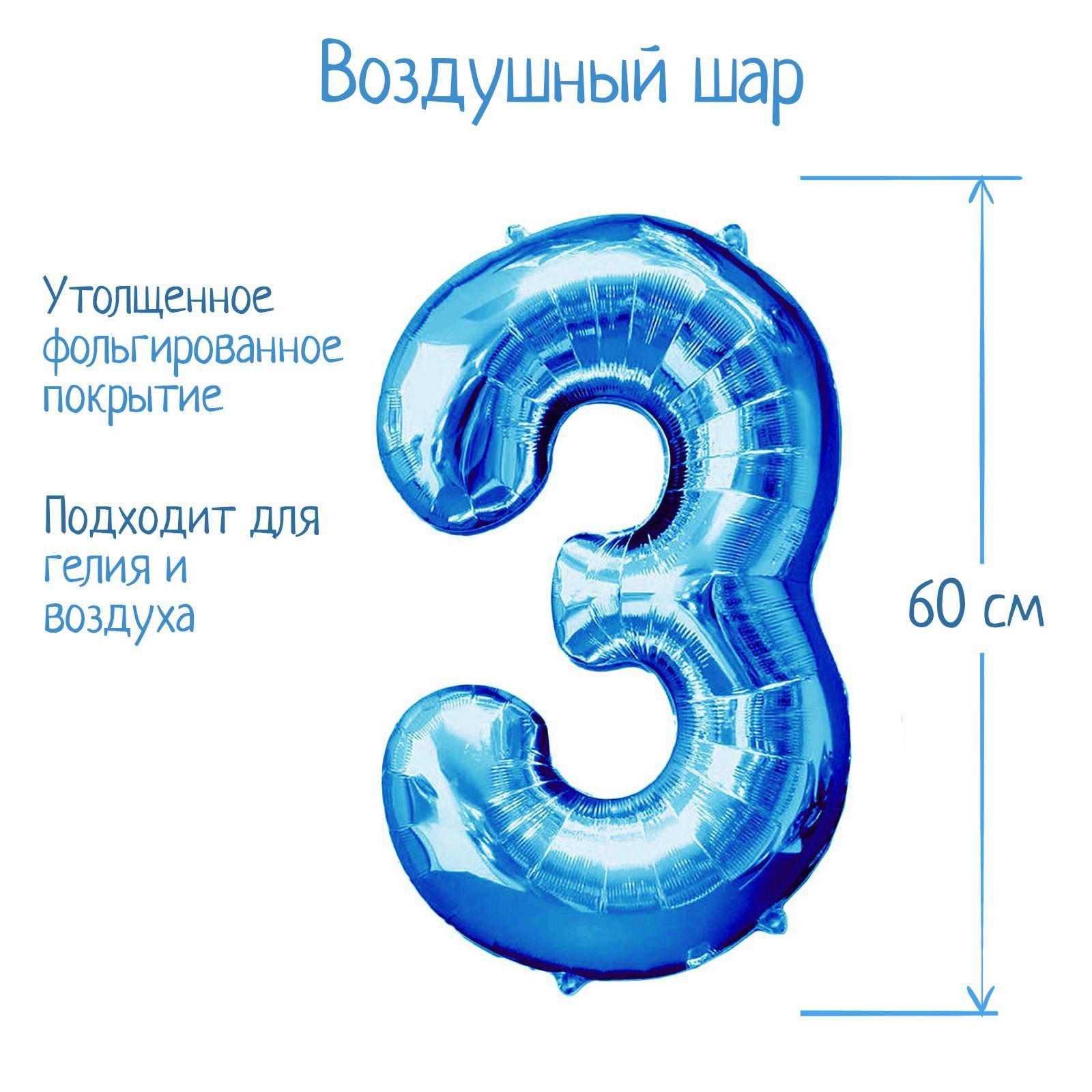 Шар фольгированный 32" Цифра 3, индивидуальная упаковка, цвет синий