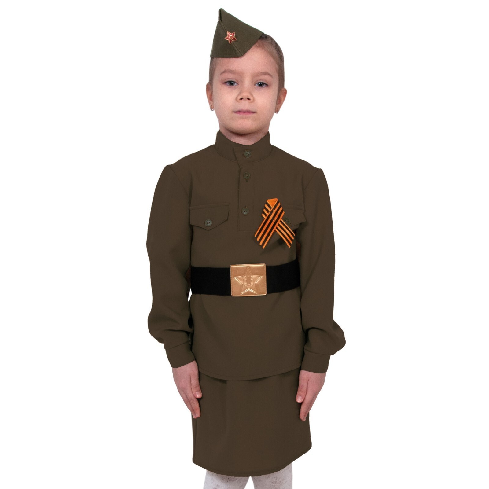 Костюм "Солдаточка", гимнастёрка, ремень, юбка, пилотка, бант, рост 116-122 см