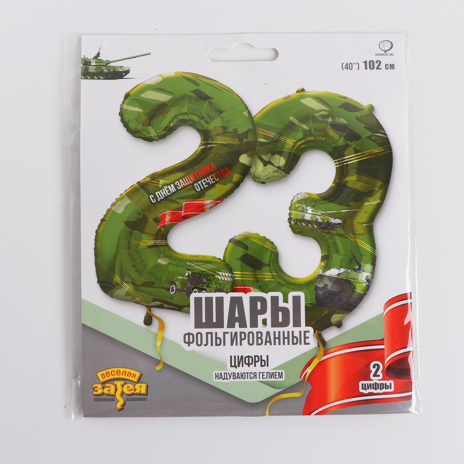 Шар фольгированный 40" «Цифра 23», С Днём защитника