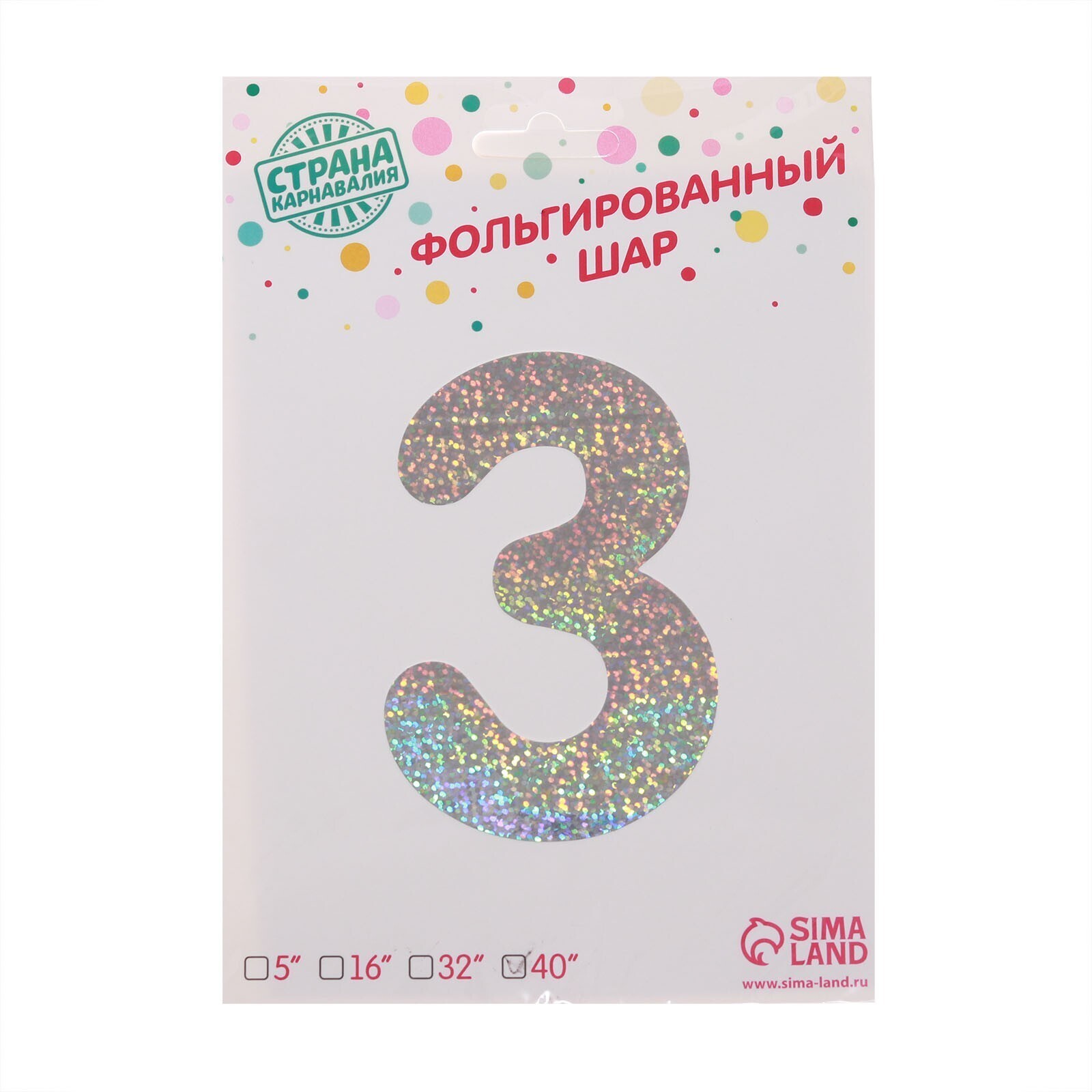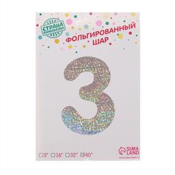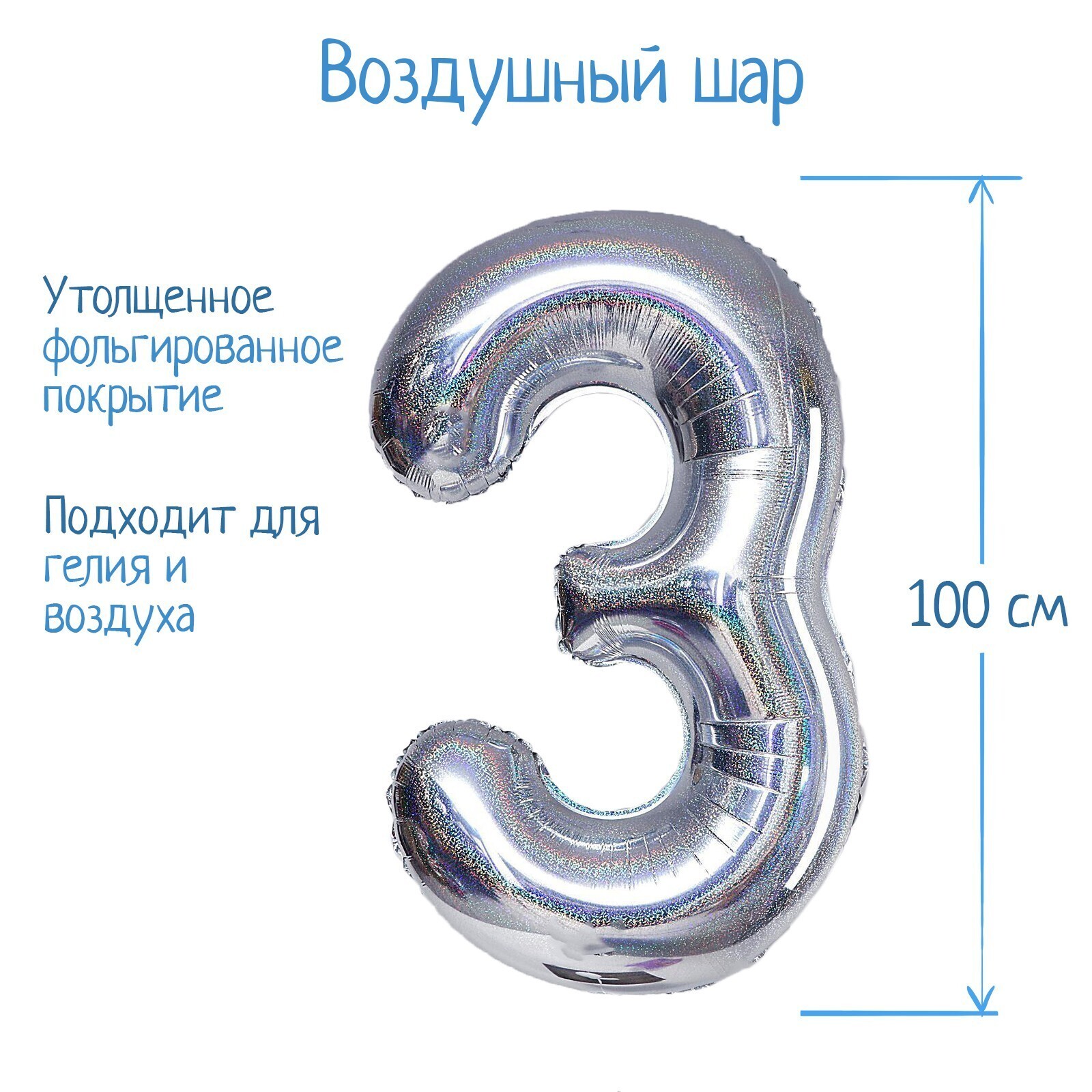 Шар фольгированный 40" «Цифра 3», голография, серебро