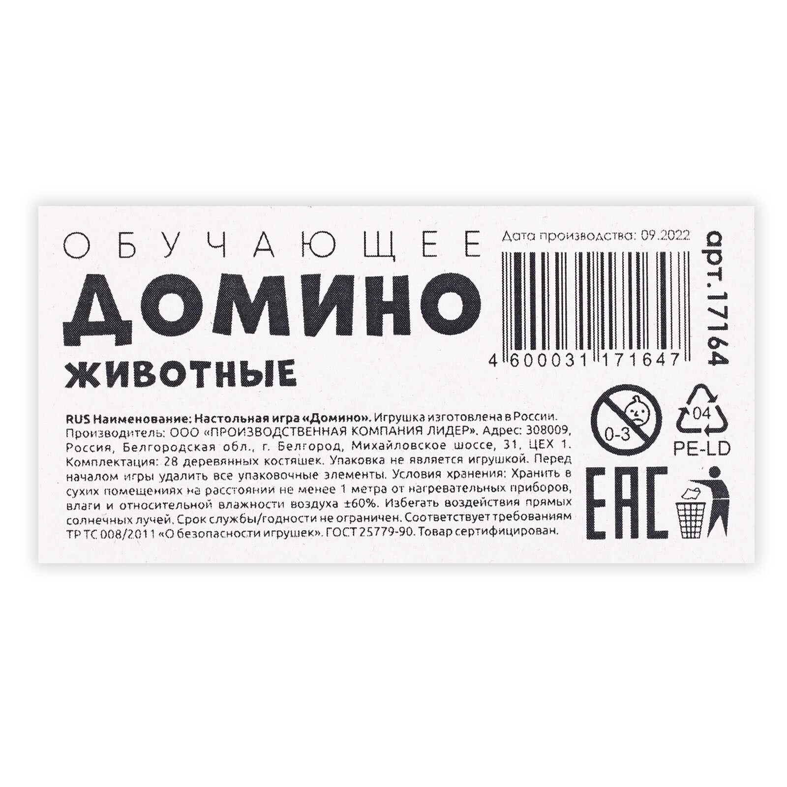 Настольная игра «Домино. Животные»