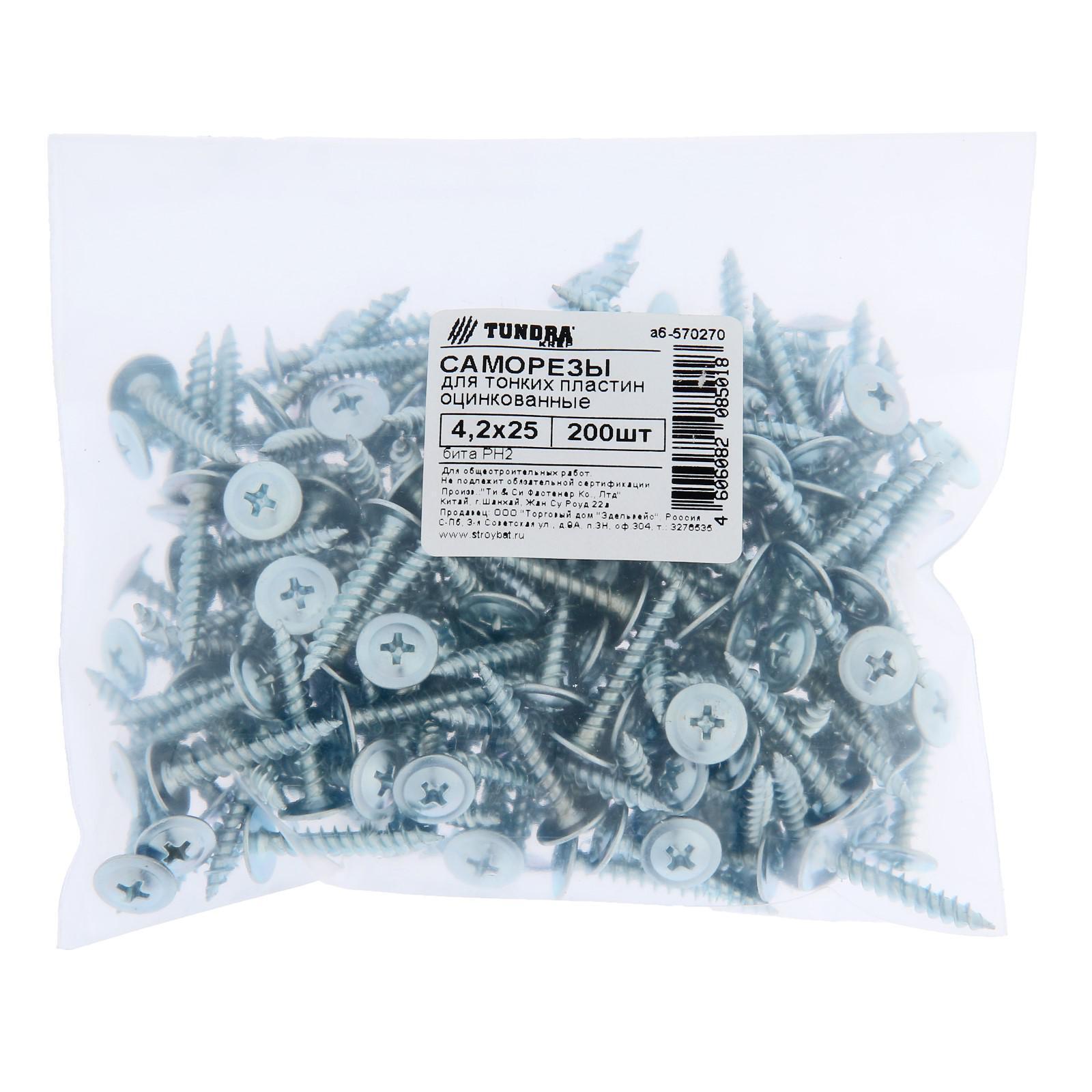 Саморезы для тонк. пластин ТУНДРА krep 4.2x25 мм, цинк 200 шт.