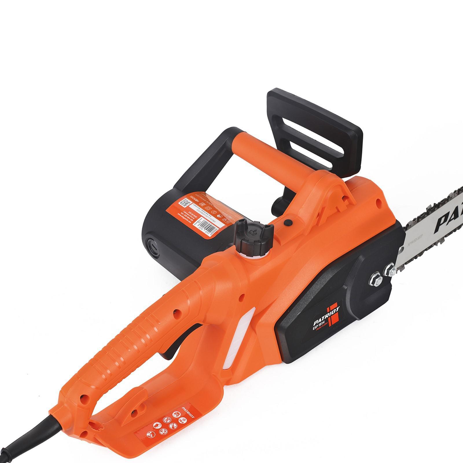 PATRIOT ESP1814 - компактная электрическая цепная пила с металлическим упором. Подходит для распиловки строительных материалов, древесины в закрытых помещениях и в саду. Производительный двигатель гарантирует высокую скорость распиловки древесины среднего диаметра.
