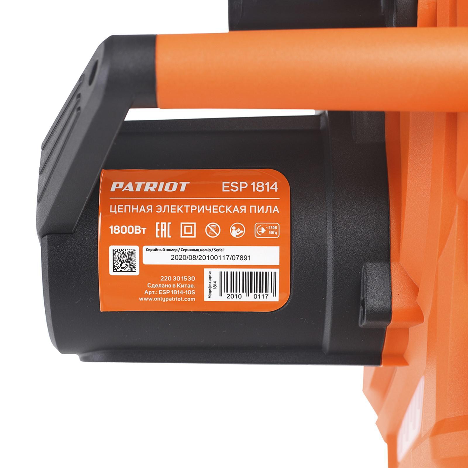 Пила цепная электрическая PATRIOT ESP1814, 1.8 кВт, 14"/35 см, 3/8, 53 зв., 7000 об/мин