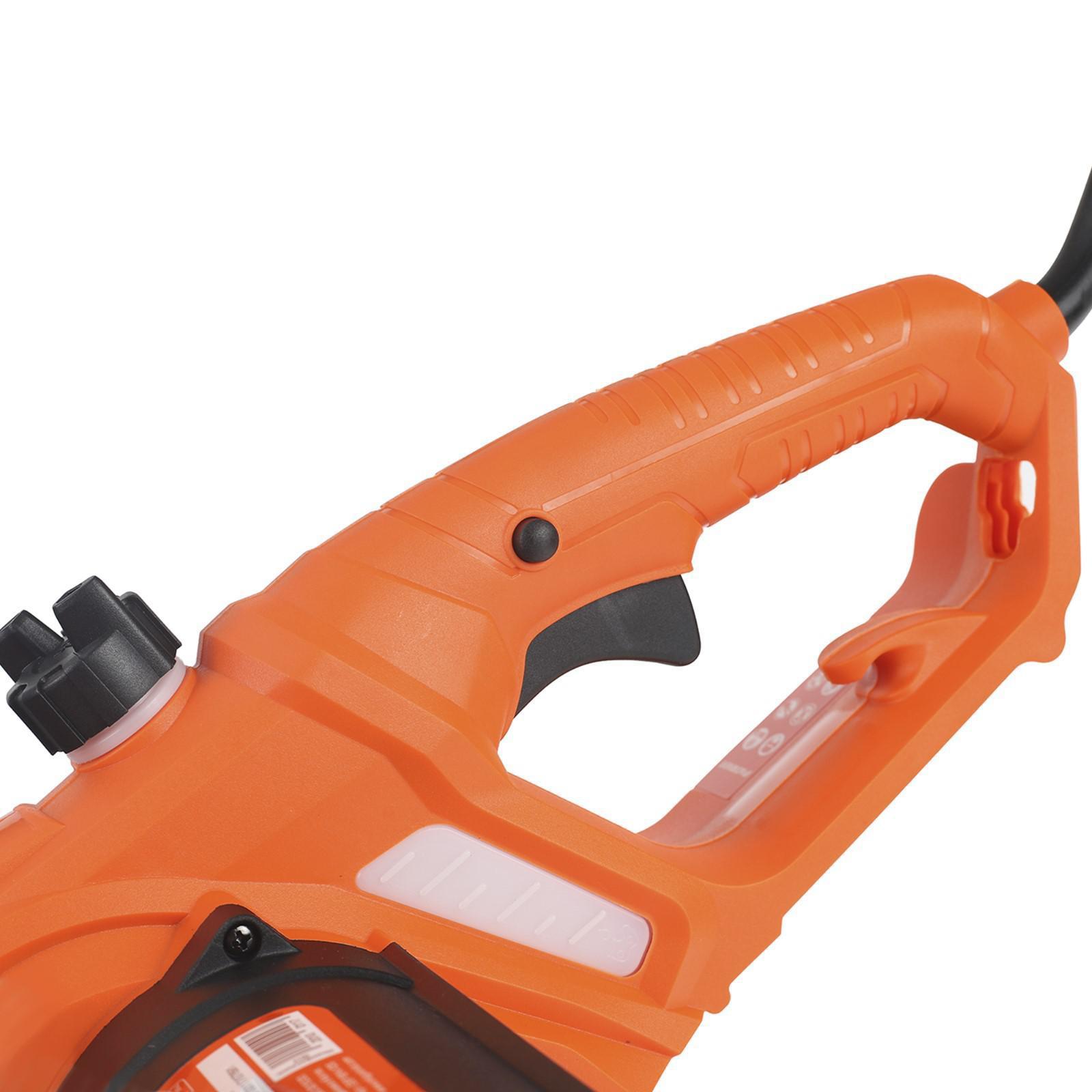 Продолжительная комфортная работа обеспечивается благодаря малому весу и низкому уровню шума. Техническое обслуживание практически не требуется, пильная цепь смазывается автоматически. Для безопасной работы пила оснащена тормозом цепи, предохранителем клавиши старта и щитком для защиты рук. На рукоятке предусмотрена скоба крепления сетевого кабеля.