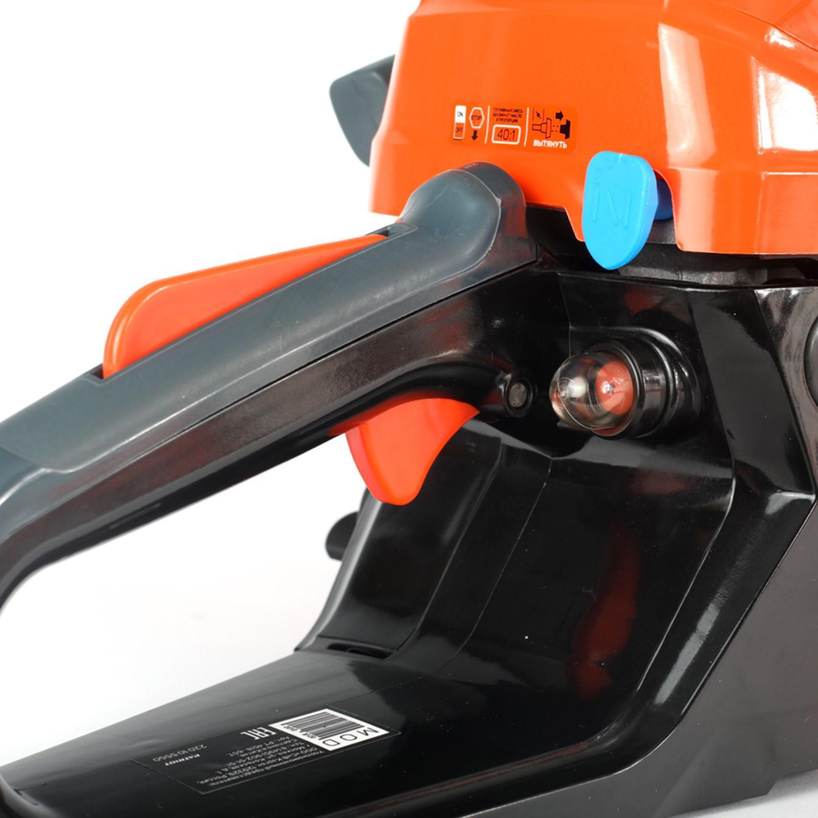 Бензопила очень проста в управлении. Для быстрого запуска в данной модели предусмотрена функция Easy Start. Хорошо сбалансированный центр тяжести делает работу легкой и неутомительной. Натяжение цепи в бензопиле регулируется посредством простого винта, расположенного с правой стороны корпуса.
