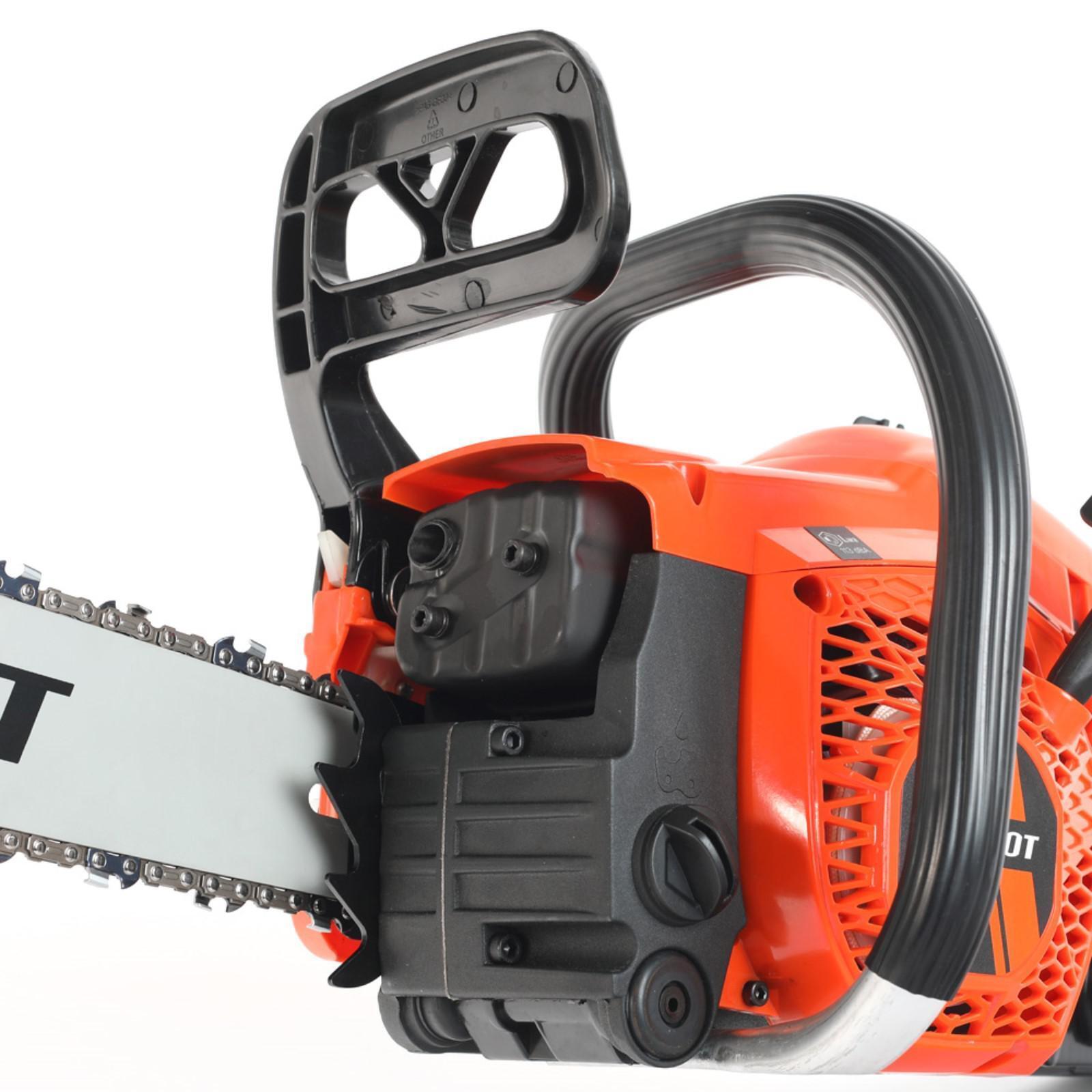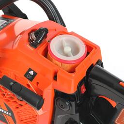 Пильная цепь смазывается автоматически. Безопасная работа гарантируется уловителем цепи, тормозом цепи, предохранителем клавиши старта и защитным щитком. Легкий доступ к фильтру и свече зажигания позволяют самостоятельно проводить техническое обслуживание.
