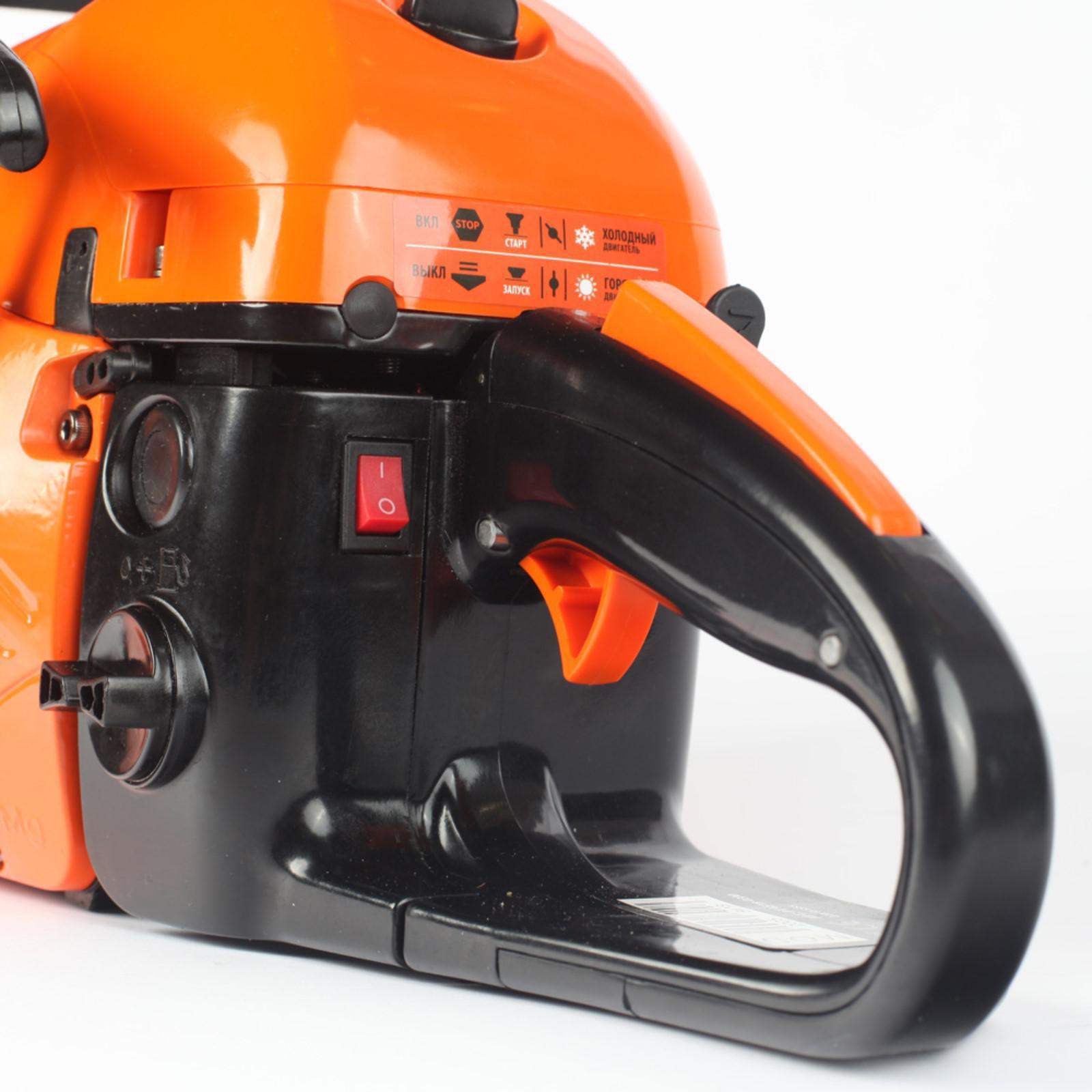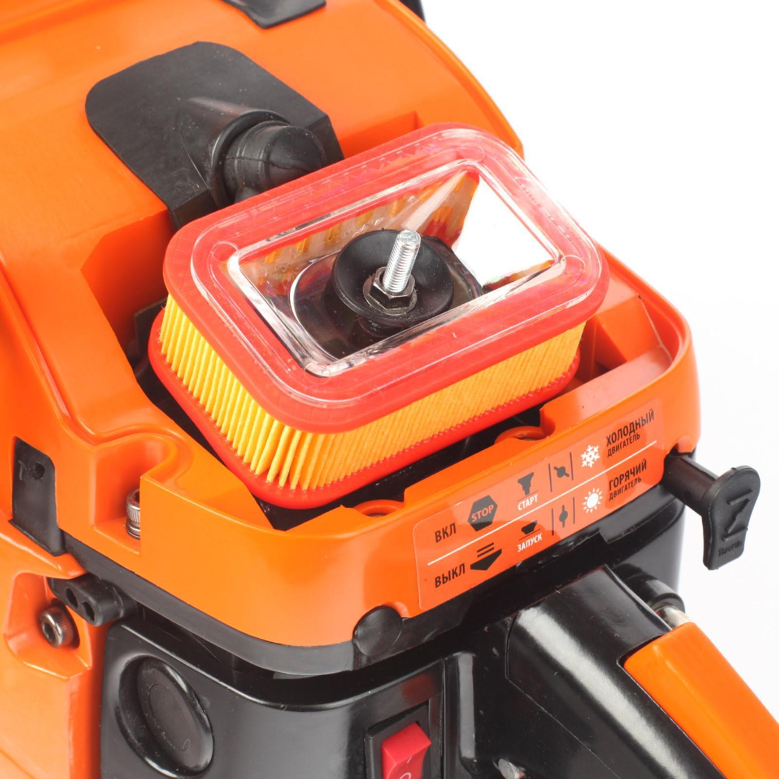 Мотор легко запускается и отличается увеличенным моторесурсом. Смазка цепи осуществляется автоматически. Боковое натяжение цепи позволяет без особых усилий натянуть цепь.