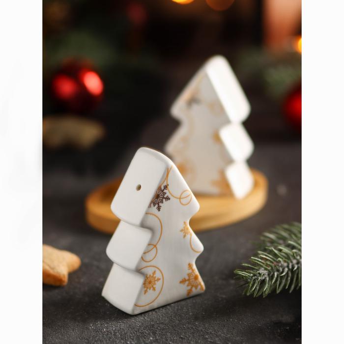 Набор для специй "Золотая снежинка" (3пр.): солонка, перечница, подставка Доляна 6908272