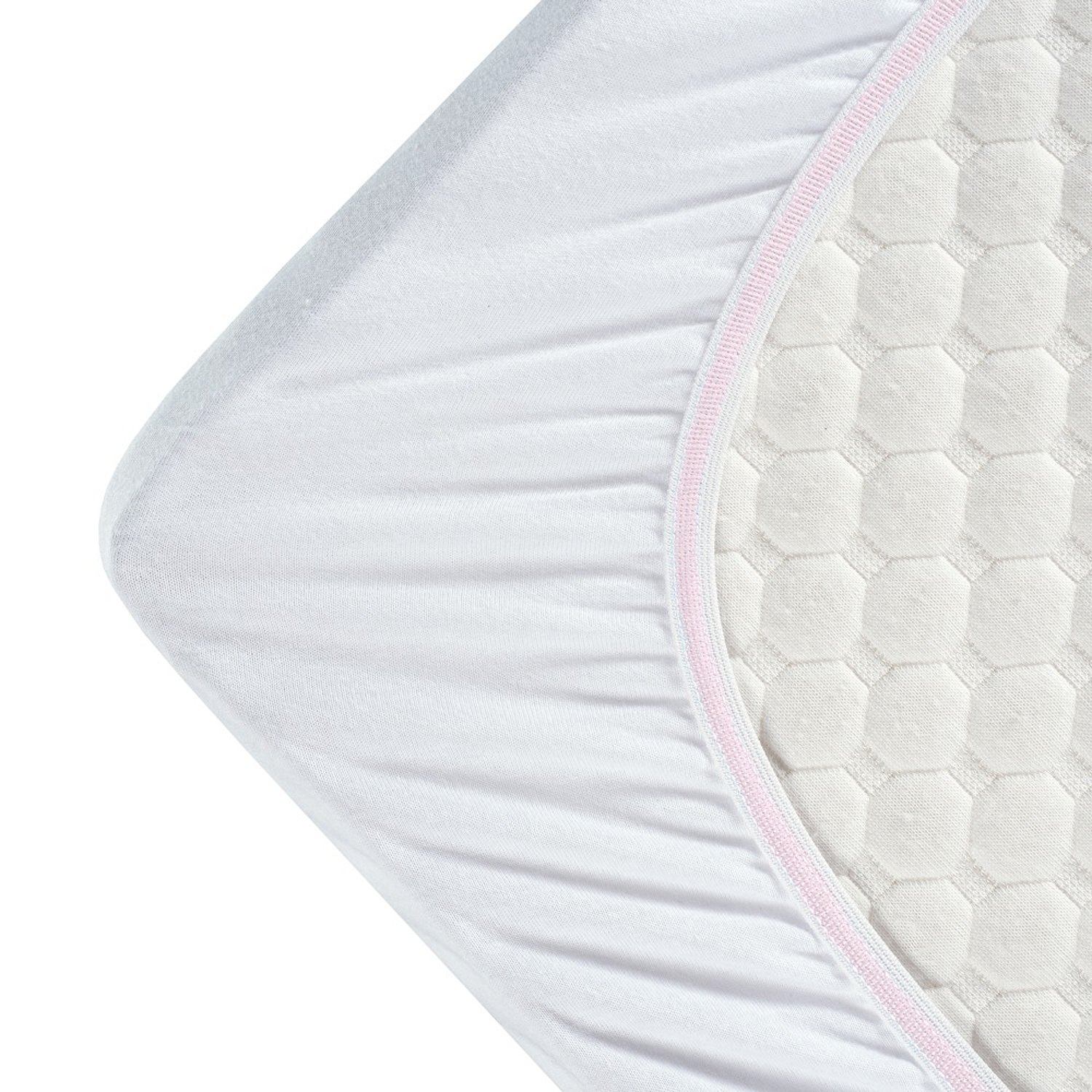 Наматрасник Stretch Jersy непромокаемый белый с бортом с розовой декоративной строчкой 60х120х25 см AP60/розовый
