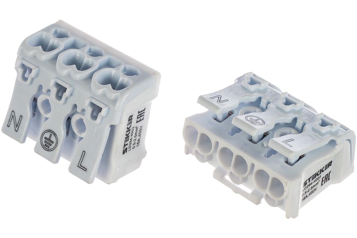Монтажная пружинная клемма Stekker LD294-4003 3 полюса без креплений (цена за шт/в упак.100)