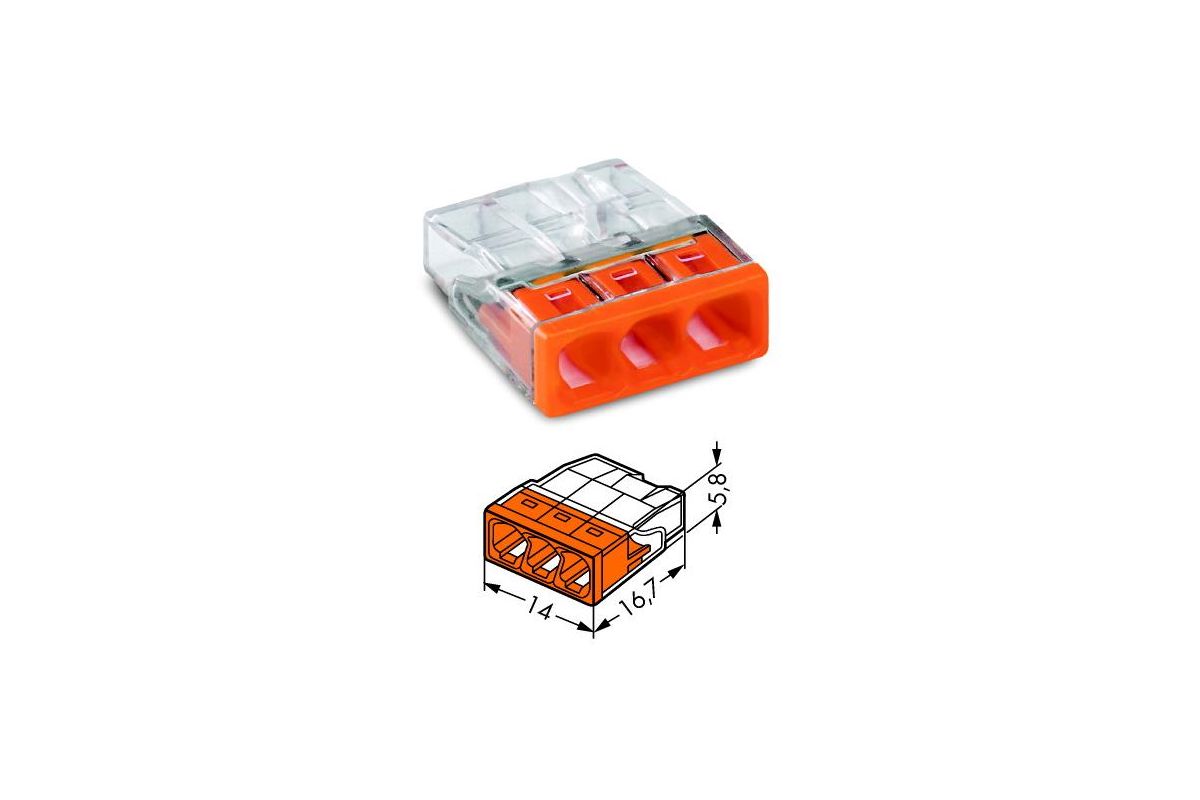 Клемма WAGO 2273-203-8 компактная 3-проводная 8шт/уп. Компактная клемма для распределительных коробок на 3 провода, сечением 0,5-2,5 мм2